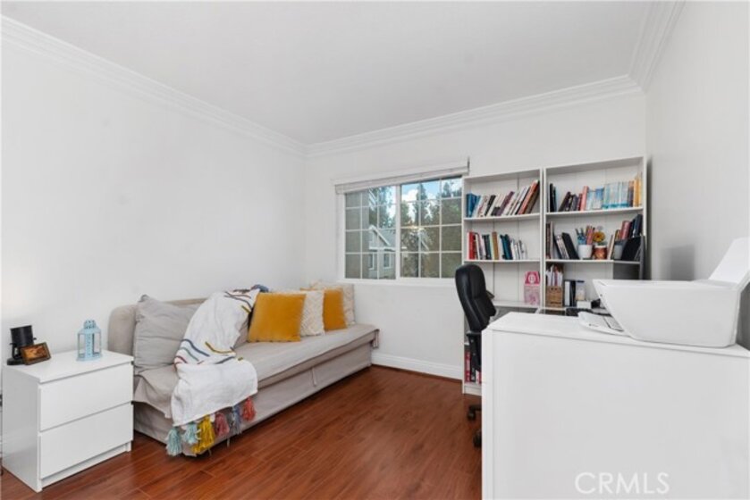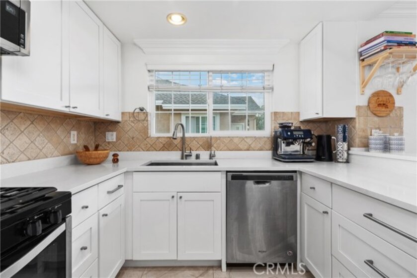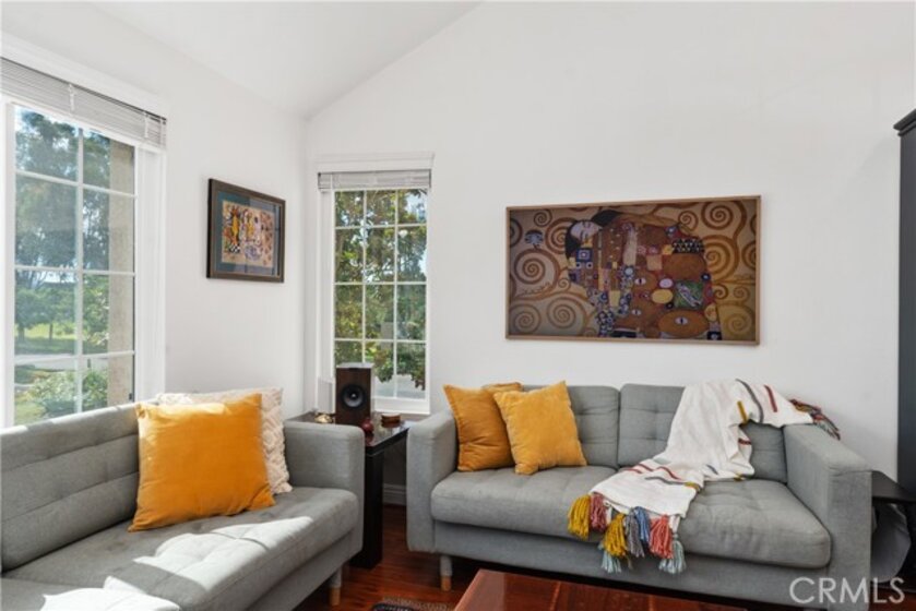 Welcome to 53 Woodleaf, an inviting upper-level home located in central Woodbridge. Perfectly situated across from Windjammer Park and the pool, this residence offers a sought-after Woodbridge location with open greenbelt views and abundant sunlight. Step inside to discover a bright and welcoming interior featuring a spacious living area with vaulted ceilings, crown molding, rich wood-style flooring, and expansive dual-pane windows that frame serene park views. The open layout flows seamlessly into the dining area. The modern kitchen has been beautifully remodeled with white shaker cabinets, quartz countertops, stainless-steel appliances, recessed lighting, and smart pull-out storage. The primary suite, featuring two spacious closets and an upgraded en-suite bathroom with dual vanities, is located along its own hallway. A second hallway leads to two secondary bedrooms, both bright and beautifully maintained. A hallway laundry closet adds everyday convenience to this well-designed layout. Additional upgrades include a Google Nest system for comfort and efficiency and a newly updated roof. Residents of Woodbridge Village enjoy exceptional amenities, including two lakes with docks, two beach lagoons, 22 pools, 16 spas, 23 tennis courts, 4 pickleball courts, and 13 waders, along with parks, playgrounds, sports courts, and scenic walking trails — all part of the Woodbridge Village Association. Close to top-rated Irvine schools, shopping, and dining, this home offers comfort, convenience, and a welcoming community environment.