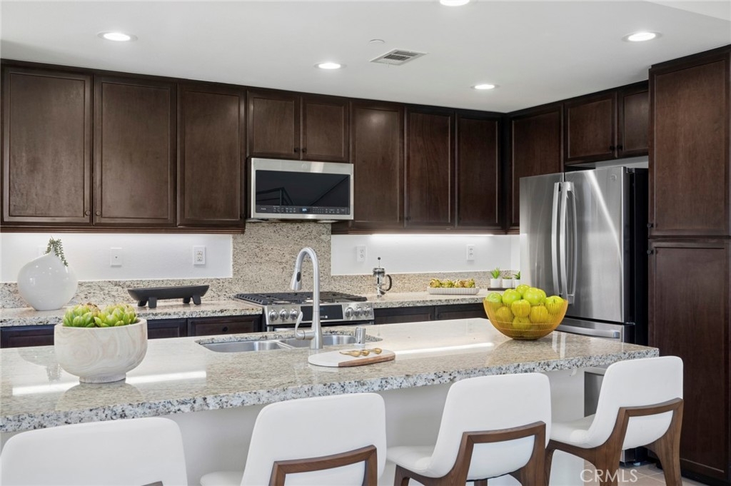 Private Entry Loft with Attached Garage & Premier Open Views - Originally selected by Lennar as the model home for The Madison at Central Park West, this exceptional residence showcases a premier location with one of the best open views in the community, along with the thoughtful design and finish level typically reserved for builder showcase homes. Ideally positioned in a quiet interior section, the home features a standalone entrance directly on Rockefeller and a private attached garage, offering the comfort and privacy of a townhome with the architectural appeal of a modern loft. Elevated above surrounding homes, this residence was intentionally chosen for its unobstructed outlook, abundant natural light, and consistent ocean breezes—a combination that sets it apart from typical interior units. Inside, the home offers a bright and open layout with soaring ceilings, large-scale living spaces, and expansive windows that enhance the sense of volume. The flexible loft design is complemented by all brand new appliances, new LED lighting, fresh paint, and new carpet, creating a clean, move-in ready environment. As the original model home, the residence reflects a more refined sense of layout, lighting, and overall presentation, with details that feel more intentional and cohesive than standard builder inventory. The kitchen is both functional and well-appointed, featuring slab granite countertops, contemporary cabinetry, and stainless steel GE® appliances, opening seamlessly to the main living area. An expansive third-floor deck extends the living space outdoors—perfect for relaxing or entertaining while enjoying the open community views. Additional highlights include significant interior storage, a rare feature for loft-style homes, and a thoughtfully designed multi-level layout that enhances privacy, separation of space, and natural airflow. Located in the heart of Irvine’s Business District, 555 Rockefeller is just moments from Park Place, major employment centers, John Wayne Airport, and a short drive to Newport Beach, Fashion Island, South Coast Plaza, and major freeways. Residents of Central Park West enjoy a resort-style setting with pools, fitness facilities, sports courts, and thoughtfully designed gathering spaces with walking proximity to a hub of upscale dining (nearing completion of the footbridge to Park Place Shopping Center). Just minutes from Newport Beachand major business hubs.