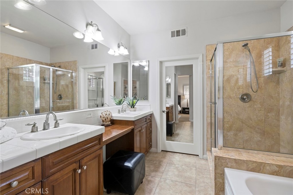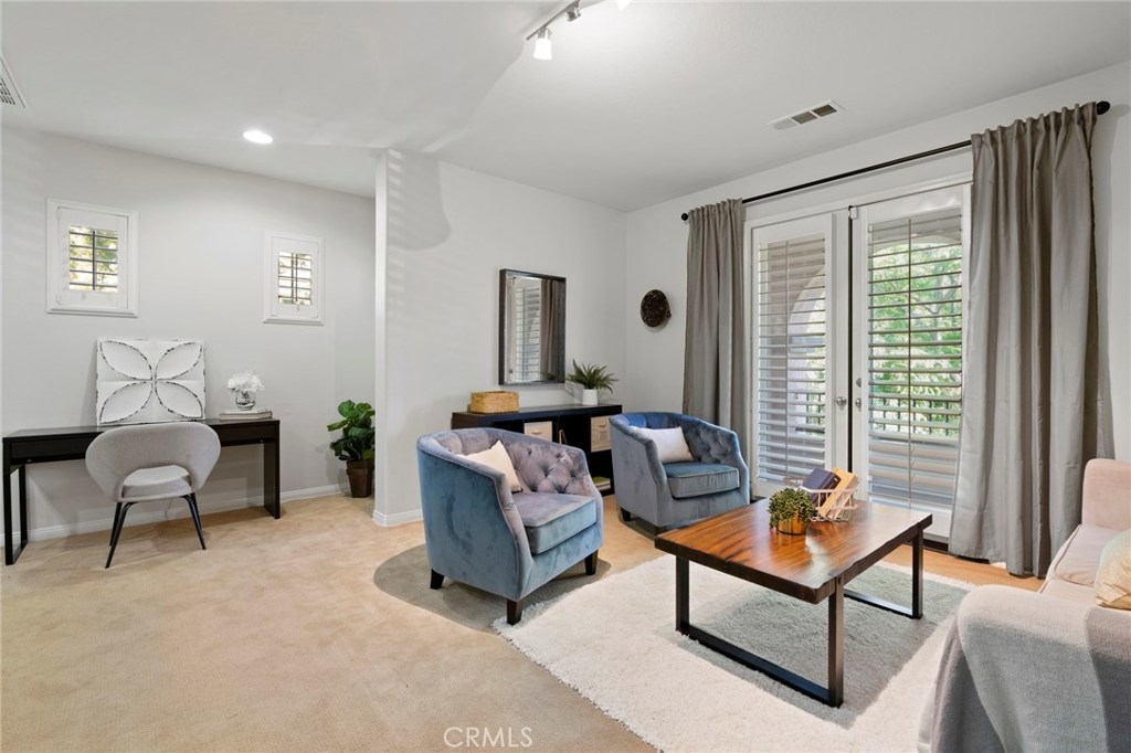 Boasting stunning curb appeal and premium corner location on a tree-lined greenbelt with desirable privacy and lush views, this breathtaking home is thoughtfully designed with extended family and guests in mind, offering rare dual master suites, one on each floor. Featuring luxurious comforts that surpass every home in this price range, the inviting great room welcomes visitors with walls of windows, cozy fireplace and beautiful accoutrements. Chef-inspired kitchen boasts rich cabinetry, granite surfaces, and stainless appliances and overlooks casual dining area and dramatic open layout that offers comfortable living. French doors offer enchanting patio views and the inviting courtyard welcomes outdoor living and entertaining. Relax and recharge in your luxurious ground floor master suite with spa-like bath, huge walk-in closet, and private patio access. A spacious secondary master upstairs, generous bonus room with French door access to Juliet balcony, and one additional bedroom downstairs enrich this home’s value and offer comfortable living space for everyone. Within the highly-acclaimed Irvine School District and just steps to the community park and clubhouse with resort-style pool and spa, this model-like home is a rare opportunity at this price.