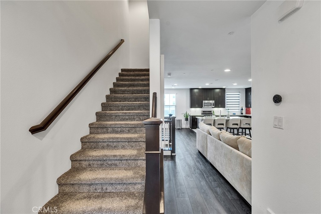 Welcome to this beautifully upgraded 3-bedroom, 2.5-bath residence located in the highly desirable Portola Springs community. Thoughtfully designed and truly move-in ready, this home blends modern finishes with functional living in one of Irvine’s most sought-after neighborhoods. Upon arrival, you’ll appreciate the convenience and privacy of a tandem garage. Inside, new flooring and plush carpeting create a warm, inviting feel throughout. The second level features a bright, open-concept living space anchored by a chef-inspired kitchen with stainless steel appliances, generous cabinetry, recessed lighting, and smart blinds that effortlessly set the tone for any occasion. The living area flows seamlessly to a private balcony complete with a privacy screen offering the perfect spot to unwind and enjoy evening skies. The third level is home to a well-appointed laundry area, two comfortable secondary bedrooms, and a full shared bathroom. The primary suite serves as a peaceful retreat, featuring a spacious walk-in closet and a private ensuite bath. Residents enjoy access to resort-style amenities including pools, tennis and pickleball courts, scenic walking trails, parks, and playgrounds. Ideally located near top-rated Irvine schools and major commuter routes, this home offers an exceptional lifestyle with the best of convenience, comfort, and community.