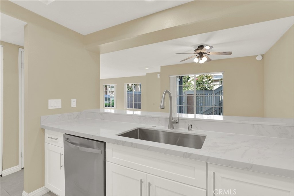 A wonderful opportunity to live in Irvine's Woodbridge community. This beautiful condo has 2 bedrooms, 1.25 bathrooms, approx. 1,022, located on the first floor. Kitchen has been completely remodeled. Brand new cabinets/vanity and quartz countertops in kitchen/bathroom/primary bedroom. Large primary bedroom with walk-in closet and vanity with sink. Second bedroom has floor to ceiling mirror closet doors. It can also be used as an office/den/playroom. New recessed lights. Washer/Dryer hookup inside. Large storage by the front patio. Outlets, Switches, and Vertical Blinds were just replaced less than 3 years ago. Conveniently located near schools (Woodbridge Highschool), numerous shopping centers, supermarkets, restaurants, banks, parks (Windjammer Park, Mike Ward Community Park), Woodbridge South Lake, and more. Easy access to the 405 and 5 Freeway and 261/133 Toll Roads.