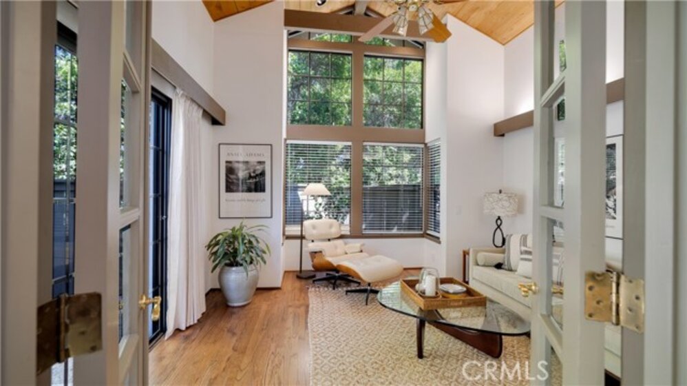 Unique expanded home in the Woodbridge Crossing! Such gorgeous Monterey style with an added Family Room. Such a peaceful setting surrounded by luxurious tress and garden. Located at the end of a North Lake cul de sac with private driveway and guest parking. Every inch is beautiful!!! Freshly painted inside and out with new low pile carpeting. There are 2 areas of hardwood flooring-the entry and the Family Room. The kitchen has been totally remodeled with classic white cabinets and rich granite counters. All the appliances are premium brands and lightly used- Jennair ceramic cooktop, GE French door refrigerator with bottom freezer, 2 Frigidaire wall ovens and GE space saver microwave. The home is modern, open and one of a kind! A custom Living Room skylight brings the sunshine in! All lighting fixtures are new and contemporary. You will find custom touches throughout including recessed lighting, baseboards, upgraded baths, new mirrors in the Primary Bath, crystal cabinet knobs and upgraded medicine cabinets, main floor walk-in shower, all white electrical, and a brick fireplace with gas logs. The AC and furnace were replaced in 2016.Soon the garage will be painted and the Primary deck re-surfaced. The guest Bedroom has an "en-"suite full bath. Dual pane windows are found in the Family Room addition. There are 2 sets of sliding glass doors. Ceiling fans have been added to all bedrooms and the addition. There is so much to love! Everyone who has seen this home remarks about how much they love it! The wrap around garden is simply gorgeous with mature trees and new pretend grass! Such a fantastic addition!