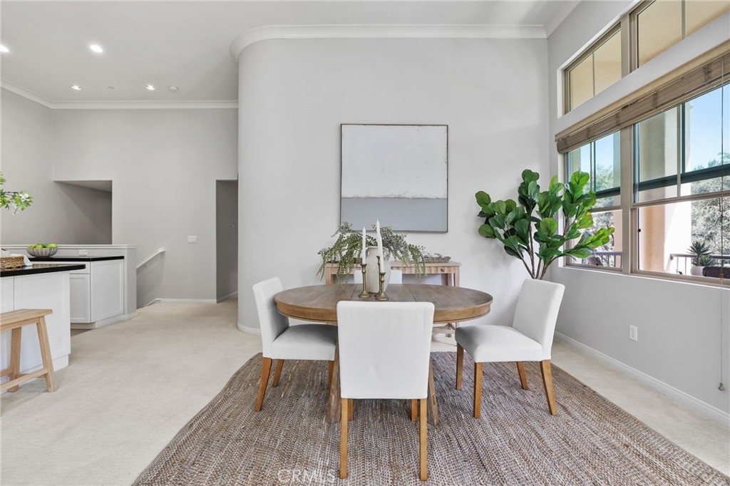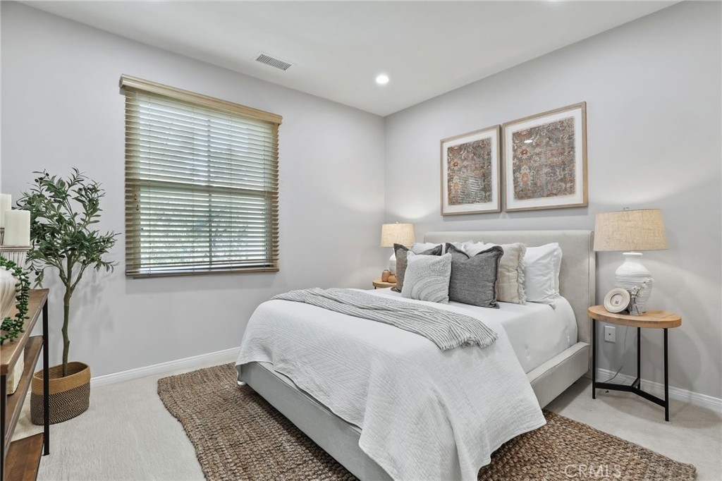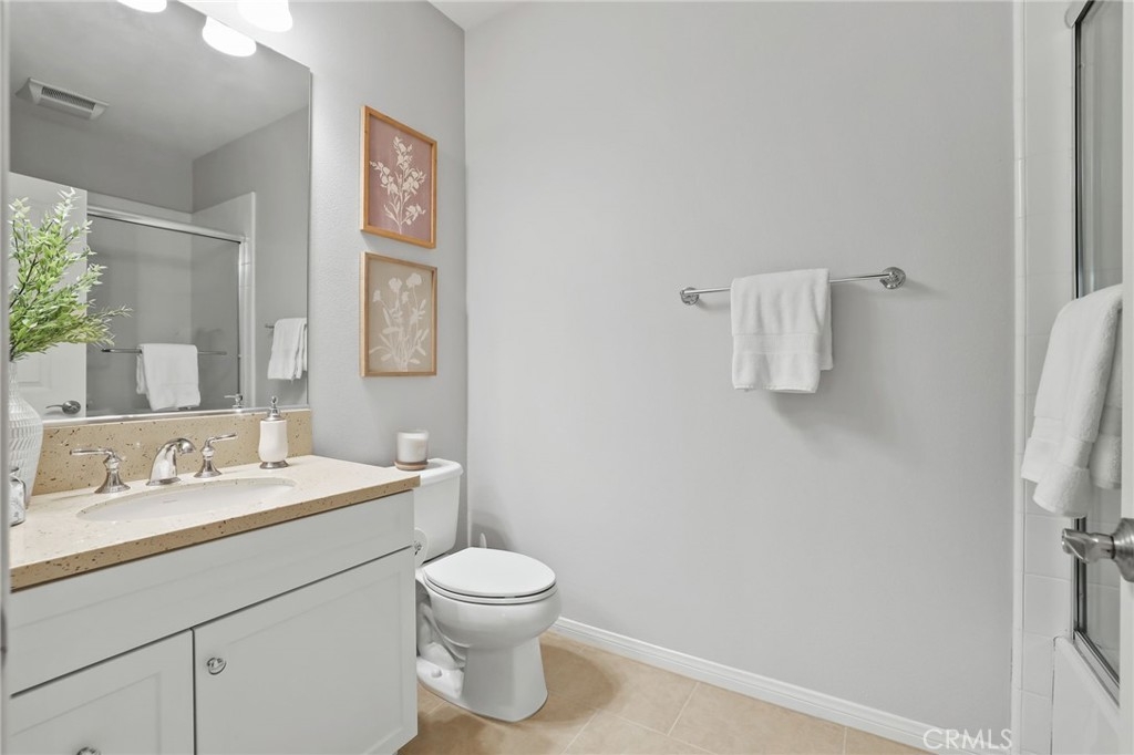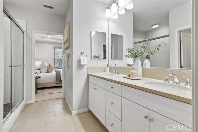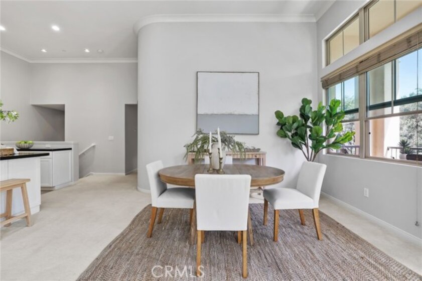 Nestled in the prestigious community of Stonegate, this beautifully designed Santa Clara residence makes a striking impression with its dramatic open layout and all living spaces conveniently situated on one level. Positioned on a premium end-unit lot, the home offers exceptional privacy and showcases true pride of ownership, standing out among homes in this price range. A welcoming stairway leads to the inviting entry highlighted by a covered front door. Inside, you are greeted by a spacious great room with soaring 12-foot ceilings that create a bright and airy atmosphere. The chef-inspired kitchen is both stylish and functional, featuring granite countertops, a breakfast bar, custom cabinetry, and stainless steel appliances, perfect for everyday living and entertaining. Just off the great room, an inviting private deck overlooks a tranquil tree-lined setting, creating an ideal space for relaxing or enjoying al fresco dining. The primary suite offers a peaceful retreat complete with a walk-in closet and a well-appointed bathroom featuring dual vanities. Abundant natural light fills the home through large windows, highlighting designer custom paint and plush carpeting throughout. Located within the award-winning Irvine Unified School District, the home is assigned to Stonegate Elementary, Sierra Vista Middle School, and Northwood High School. Residents enjoy resort-style community amenities including parks, pools, spas, sports courts, and playgrounds. Conveniently located near Woodbury Town Center, the Great Park, and Toll Road 133, this home offers the perfect blend of comfort, privacy, and accessibility.