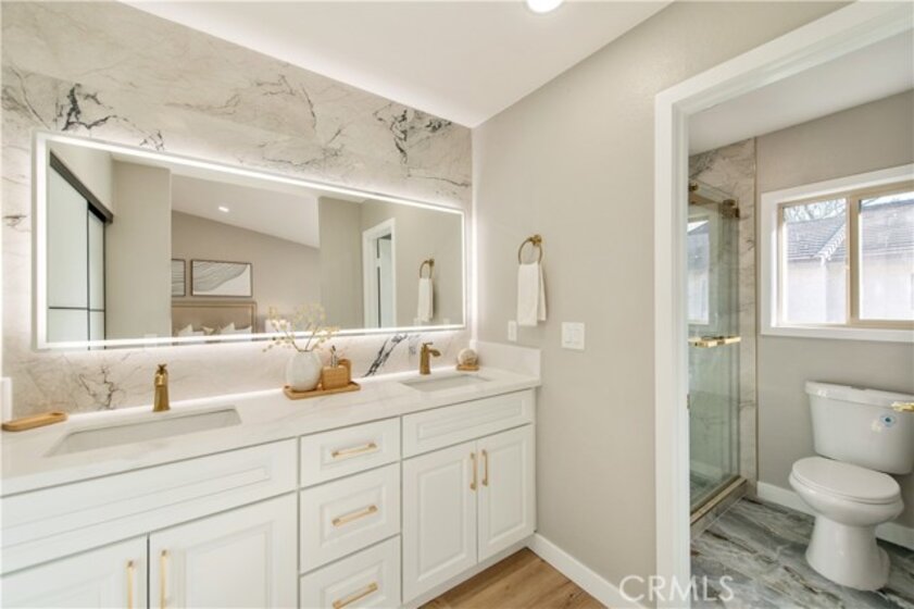 Located in the highly desirable Turtle Rock Meadows community, this beautifully renovated home offers modern elegance, thoughtful design, and exceptional functionality. The property has been fully renovated with city permits and professionally inspected, providing peace of mind for today’s discerning buyer. The open-concept floor plan features 3 bedrooms and 2.5 bathrooms, soaring high ceilings, and abundant natural light. The spacious primary suite is a true retreat, highlighted by a luxurious spa-style bathroom with stunning designer showers and modern LED mirrors. The home showcases high-end finishes throughout, including a designer open kitchen equipped with a gas stove, a striking modern fireplace, and sleek glass stair railings. Additional upgrades include new recessed LED lighting, brand-new luxury vinyl hardwood flooring, and brand-new dual-panel windows and sliding doors. A rare and highly desirable feature in comparable floor plans is the city-permitted upstairs laundry closet, designed to accommodate a stackable washer and dryer, eliminating the inconvenience of garage-based laundry commonly found in similar models. The formal living and dining rooms provide excellent spaces for entertaining. Brand-new appliances, including a refrigerator and gas range. Residents enjoy access to two community pools, with Turtle Rock Park nearby featuring tennis courts, a nature center, and scenic walking trails at Bommer Canyon. The home is situated within a top-rated school district and is conveniently close to University High School, Turtle Rock Elementary, Bonita Canyon Elementary, the University of California, Irvine, Concordia University, TVT Community Day School (Tarbut V’Torah), and Turtle Rock Preschool. The neighborhood is known for being quiet, safe, and beautifully maintained, offering an exceptional Irvine lifestyle