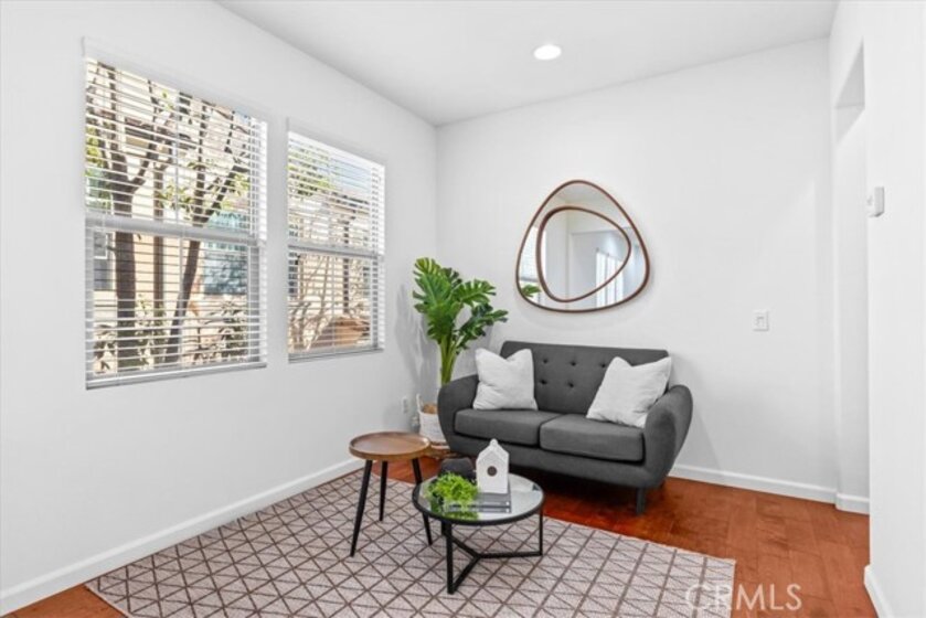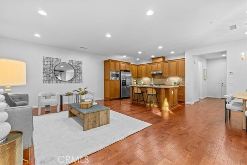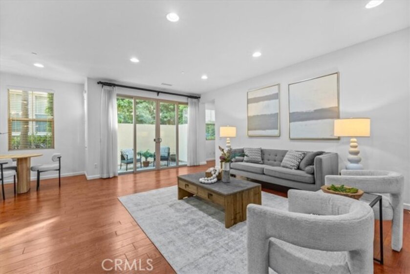 This beautiful property is located in the highly sought after Woodbury community. This end unit floorplan rarely comes on the market. It is the largest model for a two story in this Esplanade Development. It features an open floor plan with a Great Room, Kitchen, Dining area and a tech space. Kitchen is equipped with stainless steel appliances, center island, granite countertop and ample cabinet space. Downstairs also comes with a spacious bedroom and a full bathroom. Upstairs features a good size Primary Bedroom with walk in closet, en-suite Bathroom with dual sinks, separate shower and tub. Down the hall has a loft area that can be used as an office or a retreat space. Another generous sized Secondary Bedroom is at the end of the hall with its own private Bathroom. Upgrades for this house includes recessed lighting, new paint and wood flooring throughout. Conveniently located in Irvine, this home is walking distance to amenities, Woodbury Shopping Center and The Great Park. Award-winning Irvine Unified Schools, including Woodbury Elementary, Jeffrey Trail Middle School, Portola High School and Irvine Montessori Schools, just a short distance away. This home offers the perfect blend of luxury, comfort, and convenience.