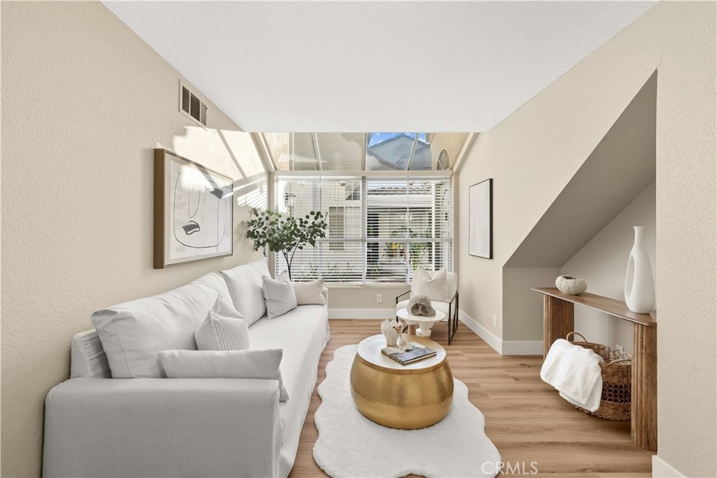 TWO CAR GARAGE AND TWO CAR DRIVEWAY! Very rare to find in Irvine in this price point! Experience the perfect mix of comfort and modern design in this bright and spacious 3-bedroom, 2.5-bath home. As an end-unit, it offers extra privacy and abundant natural light throughout. The brand-new kitchen is a showstopper—featuring white shaker cabinetry, a striking herringbone tile backsplash, quartz countertops, and stainless-steel appliances. It's open to the casual dining area as well as a flex space that can be additional dining, home office, or additional seating area. The open-concept living area impresses with vaulted ceilings, a cozy fireplace, and seamless flow to a private patio ideal for relaxing or entertaining. Upstairs, each bedroom feels spacious and bright, with vaulted ceilings and updated bathrooms featuring modern tile and finishes. The primary suite offers dual closets and a skylit bathroom retreat. Enjoy resort-style community amenities including pools, spas, and beautifully landscaped greenbelts—all close to shopping, dining, and convenient freeway access. Located within the award-winning University High School district, this home is a special gem-come see it before it's gone!