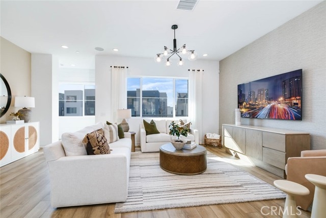 FULLY FURNISHED by a designer, all you have to do is pack your toothbrush! This exquisite move-in-ready model home features 4 bedrooms, 3 bathrooms, and a dedicated office across 2,100 square feet of thoughtfully designed living space. Ideally situated in Solis Park, a vibrant enclave within the prestigious Great Park master-planned community, this residence offers a perfect blend of comfort and convenience. The first floor includes an attached two-car garage, while the second level boasts a spacious great room, a contemporary kitchen, and a bedroom with a full bathroom. The kitchen is elegantly appointed with quartz countertops, upgraded cabinetry, and brand-new stainless-steel appliances. The third floor showcases the luxurious primary suite and two additional bedrooms. Zoned for the highly acclaimed Irvine School District, the home is just a short walk from Portola High School, the K–8 Solis Park School, and the community’s amenities, including a park, pool, and clubhouse. Additional highlights include fully paid-off solar panels and the inclusion of all furniture, TV, and washer/dryer—making this truly a move-in-ready home you won’t want to miss.