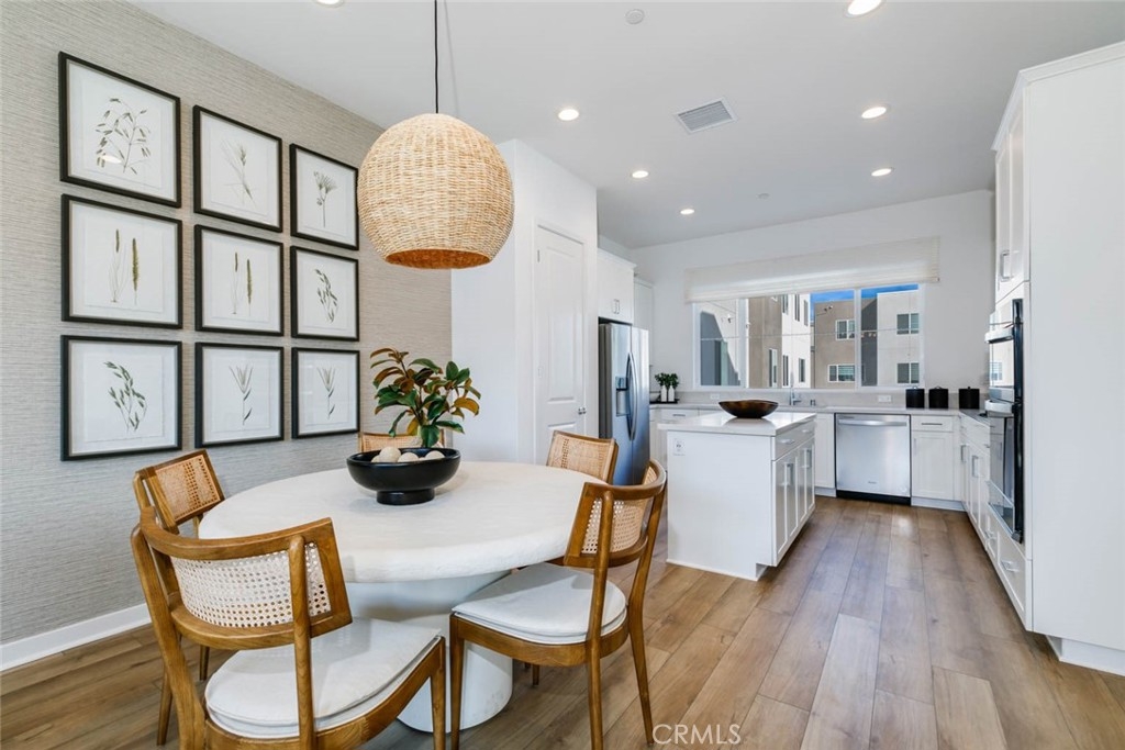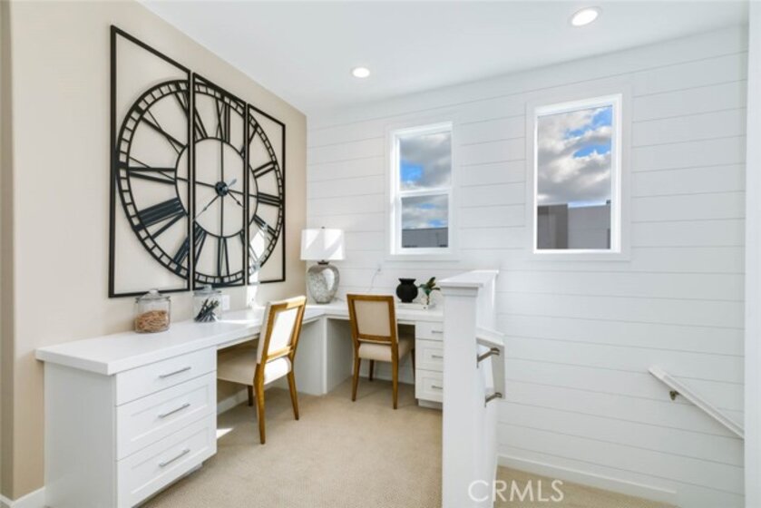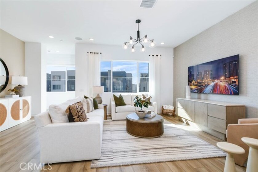FULLY FURNISHED by a designer, all you have to do is pack your toothbrush! This exquisite and rare end unit, move-in-ready model home is filled with exceptional natural light, features 4 bedrooms, 3 bathrooms, and a dedicated office across 2,100 square feet of thoughtfully designed everyday living. There is no shared wall on the third floor. Ideally situated in Solis Park, a vibrant enclave within the prestigious Great Park master-planned community, this residence offers a perfect blend of comfort and convenience. The first floor includes an attached two-car garage, while the second level boasts a spacious great room, a contemporary kitchen, and a bedroom with a full bathroom. The kitchen is elegantly appointed with quartz countertops, upgraded cabinetry, and brand-new stainless-steel appliances. The third floor showcases the luxurious primary suite and two additional bedrooms. Zoned for the highly acclaimed Irvine School District, the home is just a 2-minute short walk to top-rated Portola High School, the K–8 Solis Park School, and the community’s amenities, including a park, pool, and clubhouse. Additional highlights include fully paid-off solar panels and the inclusion of all furniture, TV, and washer/dryer—making this truly a move-in-ready home you won’t want to miss.