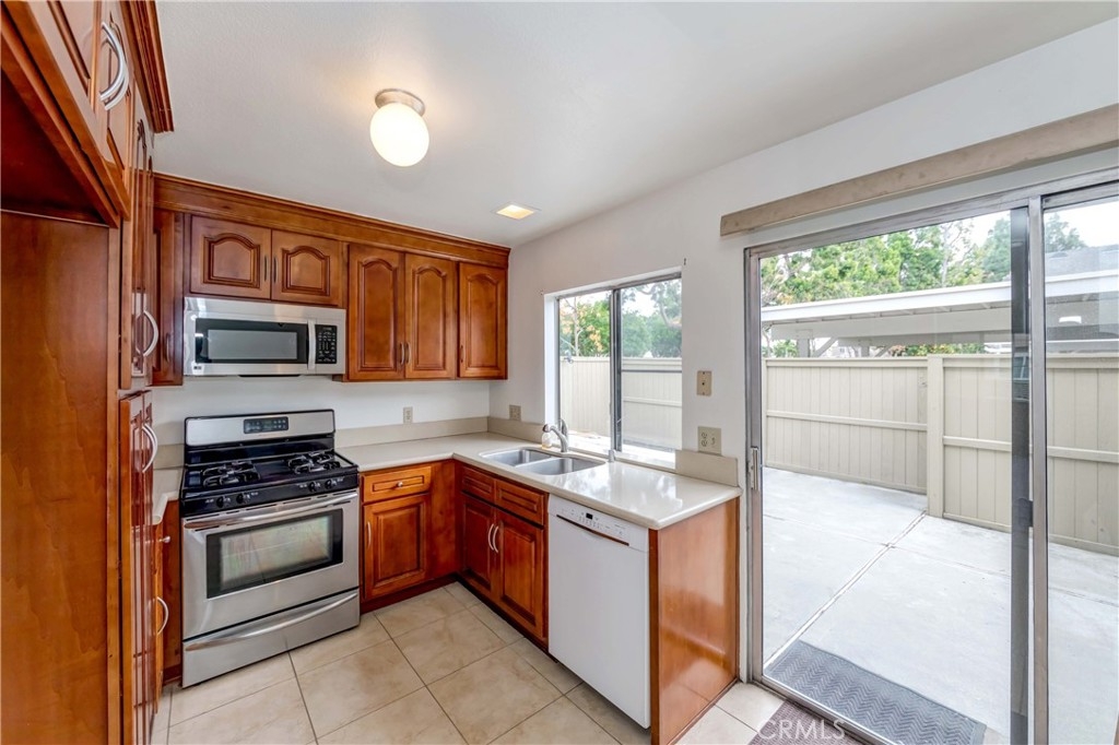 BEAUTIFUL HOME! Conveniently located in the highly sought-after Woodbridge Community in IRVINE. This spacious home features freshly painted neutral white color including doors and wood trim, ceramic tile floor on the first level, and carpet upstairs. Recently updated bathrooms with replaced vanities and the main bath have a tile shower/tub enclosure and a clear glass door. Sunny and bright, this home has an additional window in the dining area and the kitchen streams natural light through the large slider. The kitchen updates include cherry wood custom cabinetry, Corian-style countertops, stainless gas range, an overhead microwave, and a white dishwasher. One of the best features of this condo is the wrap-around patio yard. Being an end unit this allows for more space and privacy between the units. The 2 assigned carport spaces are conveniently located directly outside the private, enclosed patio and storage closet. Enjoy the wonderful Woodbridge amenities! Nearby Timber Run Park offers a swimming pool, spa, tennis, sports courts, covered tables, grill, & restrooms. Woodbridge has 2 lakes, 22 pools, a splash pad, 16 spas, 2 beach lagoons with boat docks, tennis and pickleball courts, and much more!