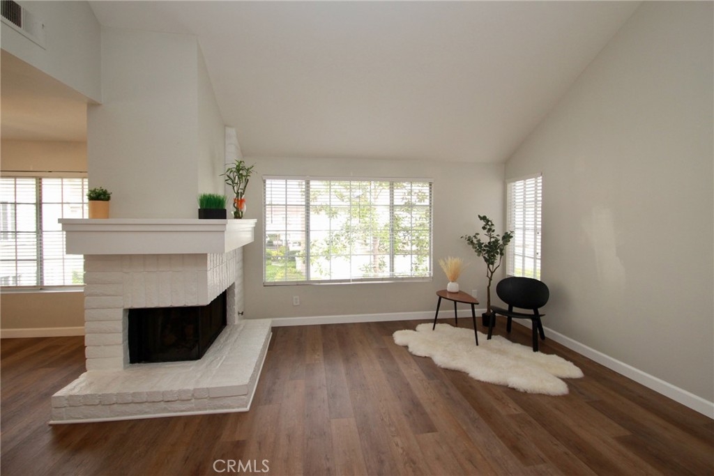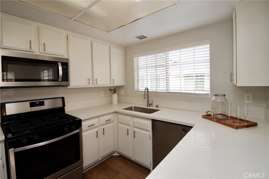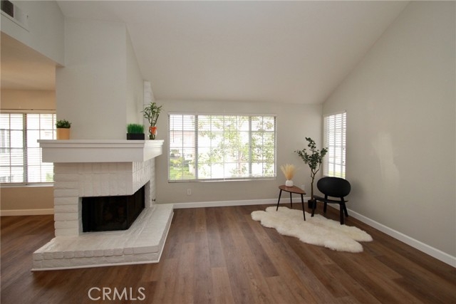 Welcome to the Alders, a centrally located complex in the beautiful neighborhood of Woodbridge. This spacious, open floor plan condo was recently updated in 2020. High ceilings in the entry way and living room lead you to the kitchen and dining areas. White granite countertops with matching white cabinets surround stainless steel appliances and large sink. A fireplace separates the dining and living area, creating an inviting space for entertaining. Two full Bathrooms have also been updated with new countertops, fixtures and toilets. The flooring has been updated to a high quality LVP wood plank throughout the common areas, and carpet in the three spacious bedrooms. The Woodbridge community is situated around North and South Lake, with serene and well maintained walking trails connecting the two. Throughout the community you will have access to the resort class amenities which include 2 lagoons, 22 Pools, 16 Jacuzzi’s, 23 Tennis courts, numerous kids playgrounds and sports courts throughout. Enjoy the stunning scenery as you walk to multiple shopping centers for dining, groceries, entertainment, etc. Last, but definitely not least, this home is walking distance to award winning IUSD schools: Meadow Park Elementary, South Lake Middle School, and Woodbridge High School.