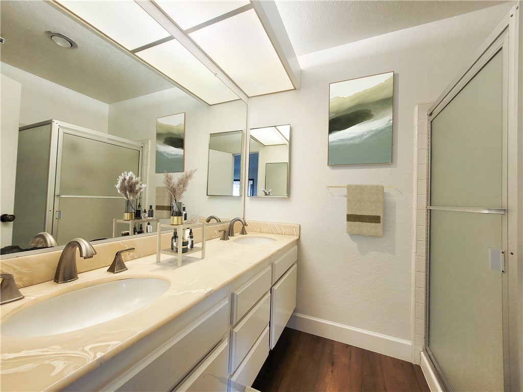 This is a Top Floor Penthouse Corner Unit with a gorgeous view! The condo features an open floor plan with newly installed Laminate Flooring. The living room and dining room area includes high vaulted ceilings and leads to a large balcony with 2 large storage closets. Master bedroom is very spacious with its own separate balcony access and mirrored walk-in closet. The second bedroom is also very large and is perfect for a bedroom or an office. This is a secured building with an elevator and includes one-car assigned gated garage. Community amenities include swimming pools, 5 tennis courts, 3 pickleball courts, 1 full size basketball court, children's playground, full gym, and clubhouse. Conveniently located in Central Irvine in equal distance between the 5 and 405 freeways, in the quiet Orangetree Terrace community. Walking distance to Irvine Valley College, Oak Creek Golf Course, and many shopping and restaurants around the area.