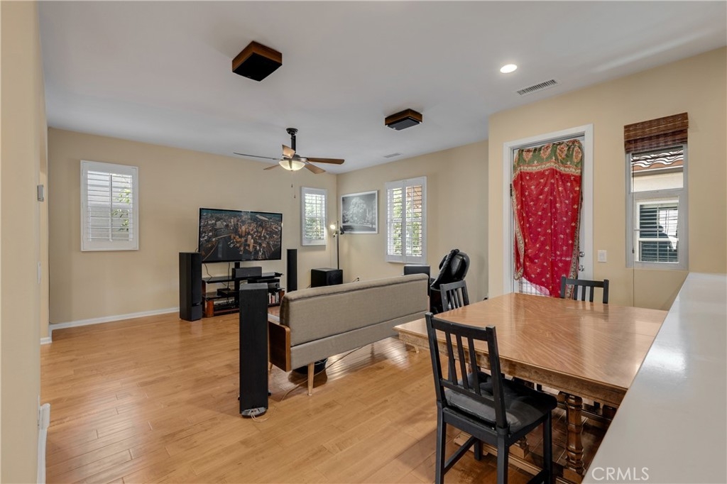Welcome to your beautifully maintained detached home located in the highly sought after Portola Springs. Huge addition to your home, fully paid out Panasonic Solar Panel system to save tons on your electricity bill, and the home is very energy efficient. On the first level, you will find the spacious secondary bedroom featuring an en-suite bathroom, perfect for a home office space or kids room. Upstairs, you will be welcomed with an open floor plan with tons of outdoor light, recessed led lighting, and gorgeous hardwood flooring in the living, dining, and kitchen. The kitchen is well-appointed with caesarstone quartz counters, white cabinets and stainless steel appliances, including Kitchenaid Refrigerator, Kitchenaid Range Hood, and Whirlpool freestanding range. In addition, you have a nice sized balcony, to peacefully relax and enjoy the outdoor breeze. The upstairs master bedroom features an en-suite full bathroom and a walk-in closet. Additional features include plantation shutters, ceiling fans, a built-in desk just outside the master bedroom and a spacious, attached two-car garage. Enjoy over 18 neighborhood parks, swimming pools, community rooms, tennis courts, tot lots, picnic areas, and don't forget the new Portola Springs Community Center. Conveniently located near Woodbury Town Center (for all your grocery, gas, restaurant needs), newly built Montessori, the Great Park, all the local freeways, toll roads, and within the award-winning Irvine Unified School District (short distance to Portola Springs Elementary School). Welcome home!