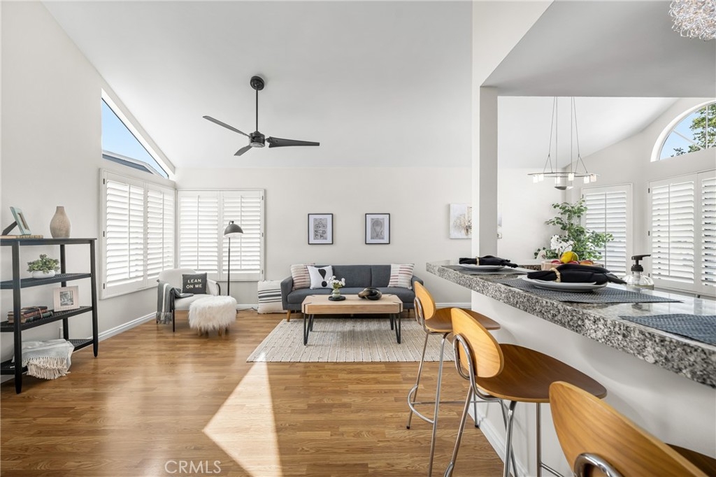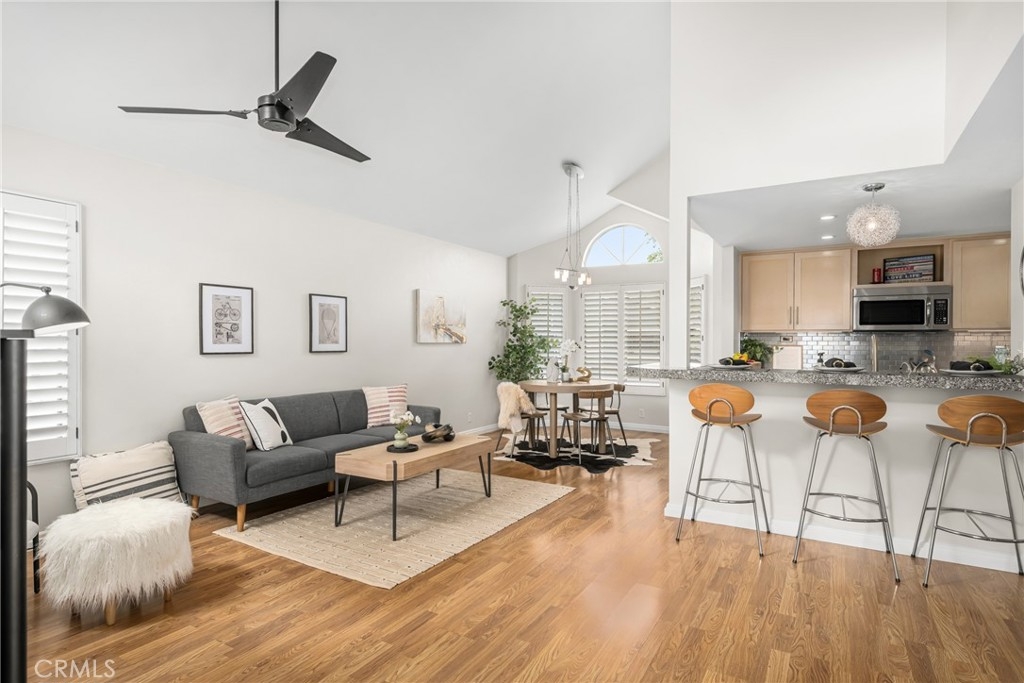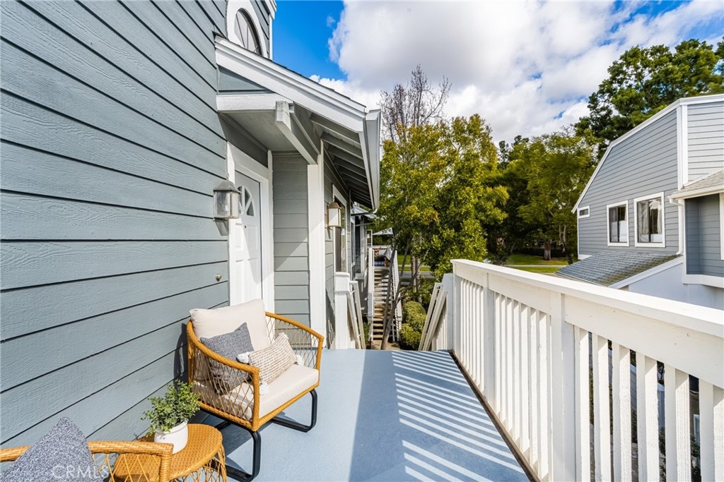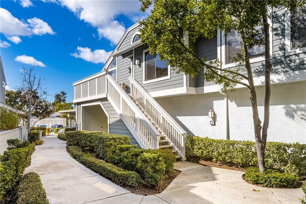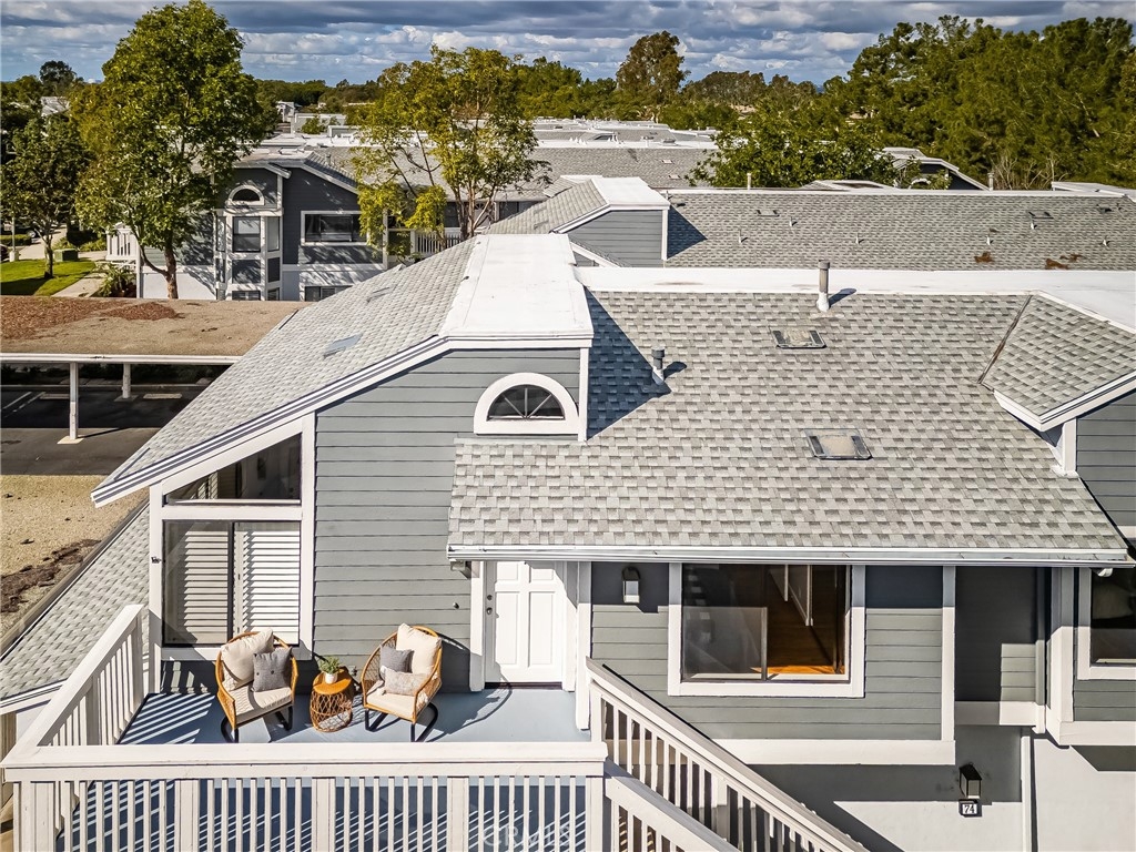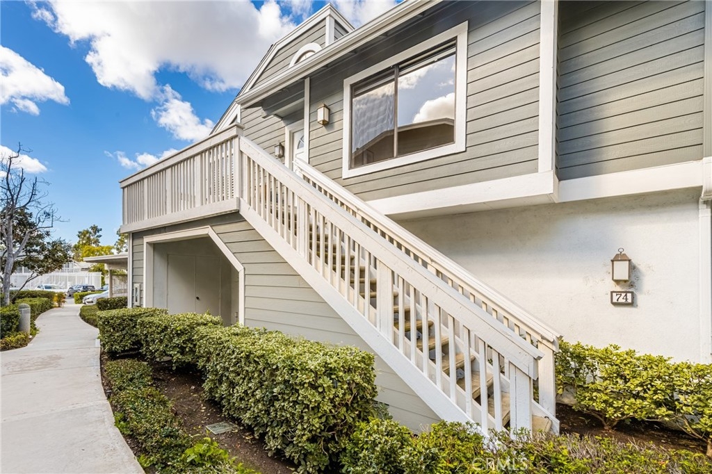 Welcome to 74 Remington, this upper-level home, with no one above or below, is located in the Horizon community in the Village of Northwood. Just up the stairs, enter the home and discover a bright and inviting atmosphere. This well-thought-out space features an open floorplan, perfect for everyday living or entertaining family and friends. The main living area features plantation shutters and vaulted ceilings with walls of windows that flood the home with sunlight! Fresh new paint and warm wood-style floors throughout the home, create a seamless flow between living spaces. The remodeled kitchen features updated cabinetry, stone and stainless-steel counters, as well as stainless appliances, including a new dishwasher. A breakfast bar, separating the kitchen from the living space, is the perfect spot for casual dining. The spacious primary suite features a large walk-in closet, ceiling fan & custom shade. The remodeled primary bathroom offers a new crisp white vanity, fixtures and new toilet. A separate area with the toilet and walk-in shower, with tile surround, provides comfort & privacy. The secondary bedroom can also be used as a home office or den. The remodeled hall bath features a new vanity, new toilet and modern black fixtures. The detached 1 car shared garage, directly below the home, ensures both convenience and security, as well as additional storage space. Extend your indoor living to the outdoors on the spacious balcony, where you can enjoy outdoor dining or just unwind at the end of the day. Just a short distance to the association pool and just across the street, explore nearby Orchard Park. Indulge in nearby shopping and dining at Cypress Village Shopping Center and quick access to freeways. Attend top-rated schools including Northwood High. Don’t miss the opportunity to make this your personal oasis. Your new home awaits! Check out the 3D tour of this beautiful home at: https://my.matterport.com/show/?m=7Gtvq9vTk6Y&brand=0