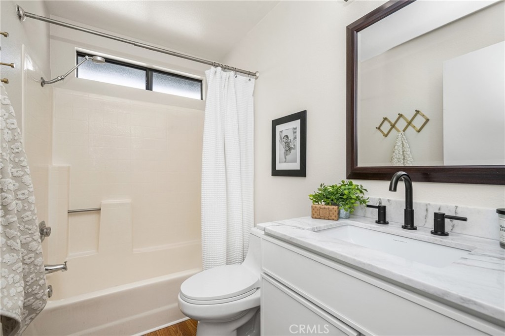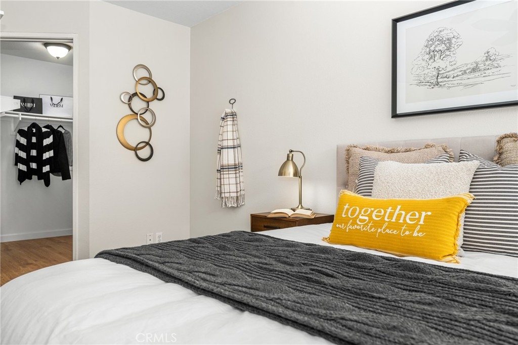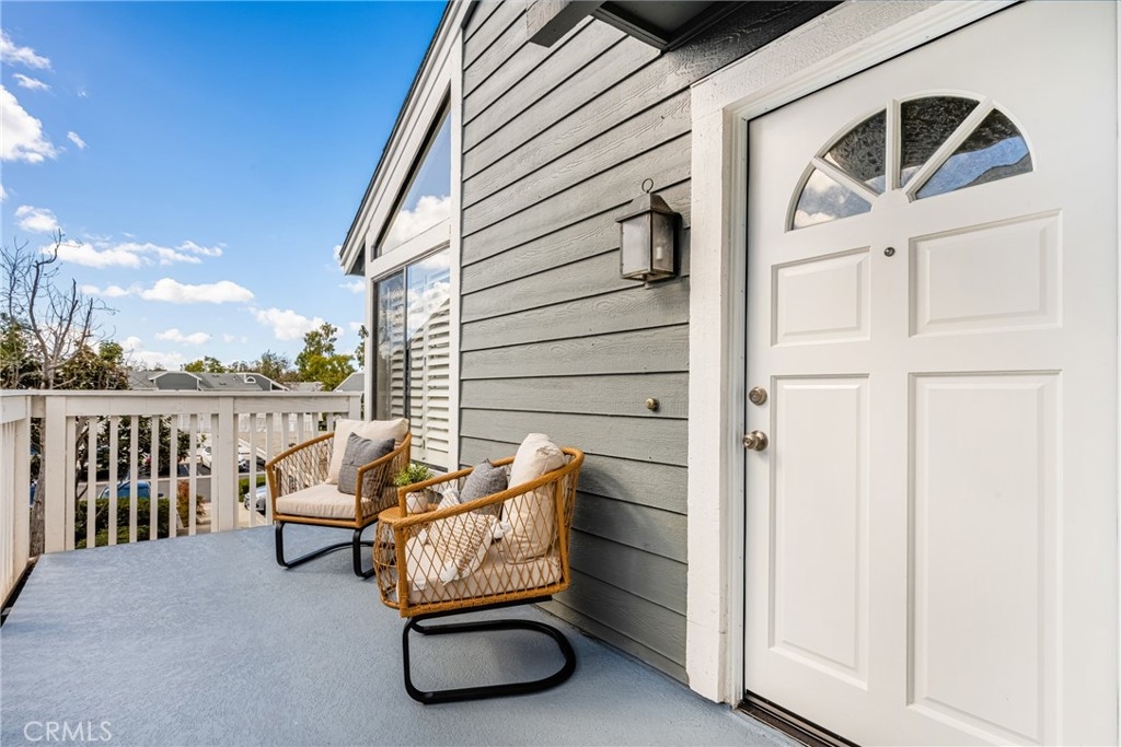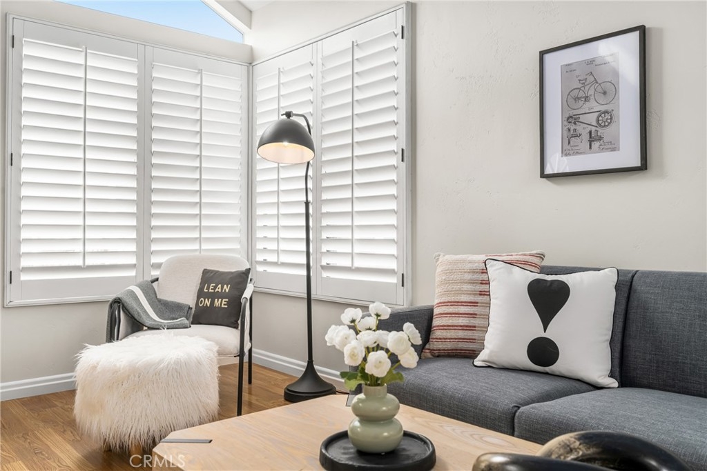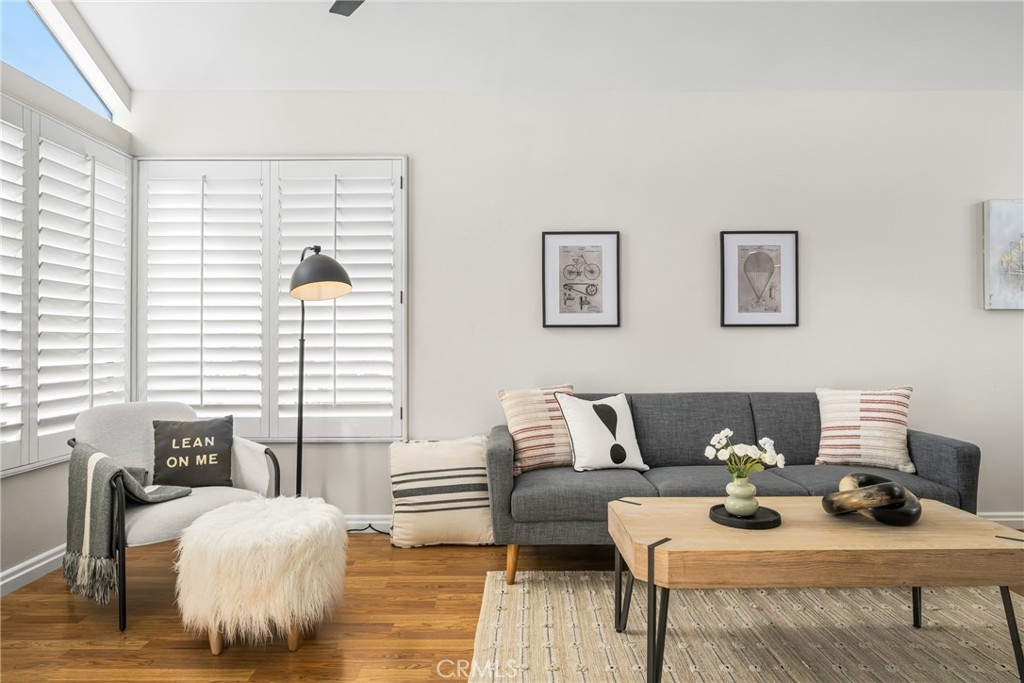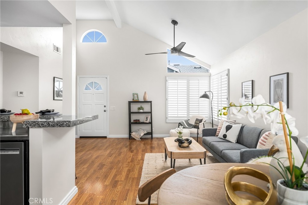 Welcome to 74 Remington, this upper-level home, with no one above or below, is located in the Horizon community in the Village of Northwood. Just up the stairs, enter the home and discover a bright and inviting atmosphere. This well-thought-out space features an open floorplan, perfect for everyday living or entertaining family and friends. The main living area features plantation shutters and vaulted ceilings with walls of windows that flood the home with sunlight! Fresh new paint and warm wood-style floors throughout the home, create a seamless flow between living spaces. The remodeled kitchen features updated cabinetry, stone and stainless-steel counters, as well as stainless appliances, including a new dishwasher. A breakfast bar, separating the kitchen from the living space, is the perfect spot for casual dining. The spacious primary suite features a large walk-in closet, ceiling fan & custom shade. The remodeled primary bathroom offers a new crisp white vanity, fixtures and new toilet. A separate area with the toilet and walk-in shower, with tile surround, provides comfort & privacy. The secondary bedroom can also be used as a home office or den. The remodeled hall bath features a new vanity, new toilet and modern black fixtures. The detached 1 car shared garage, directly below the home, ensures both convenience and security, as well as additional storage space. Extend your indoor living to the outdoors on the spacious balcony, where you can enjoy outdoor dining or just unwind at the end of the day. Just a short distance to the association pool and just across the street, explore nearby Orchard Park. Indulge in nearby shopping and dining at Cypress Village Shopping Center and quick access to freeways. Attend top-rated schools including Northwood High. Don’t miss the opportunity to make this your personal oasis. Your new home awaits! Check out the 3D tour of this beautiful home at: https://my.matterport.com/show/?m=7Gtvq9vTk6Y&brand=0