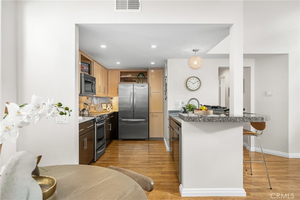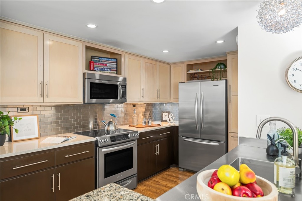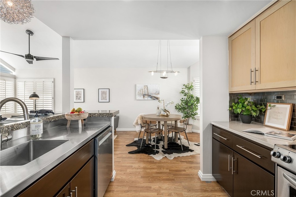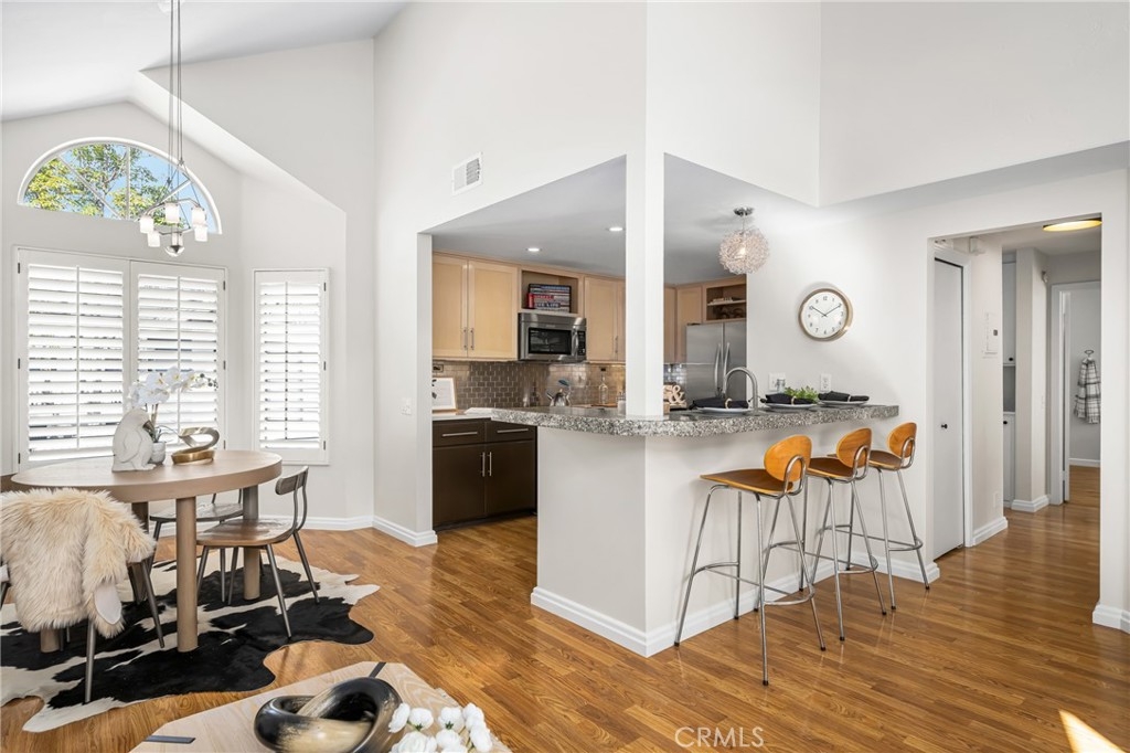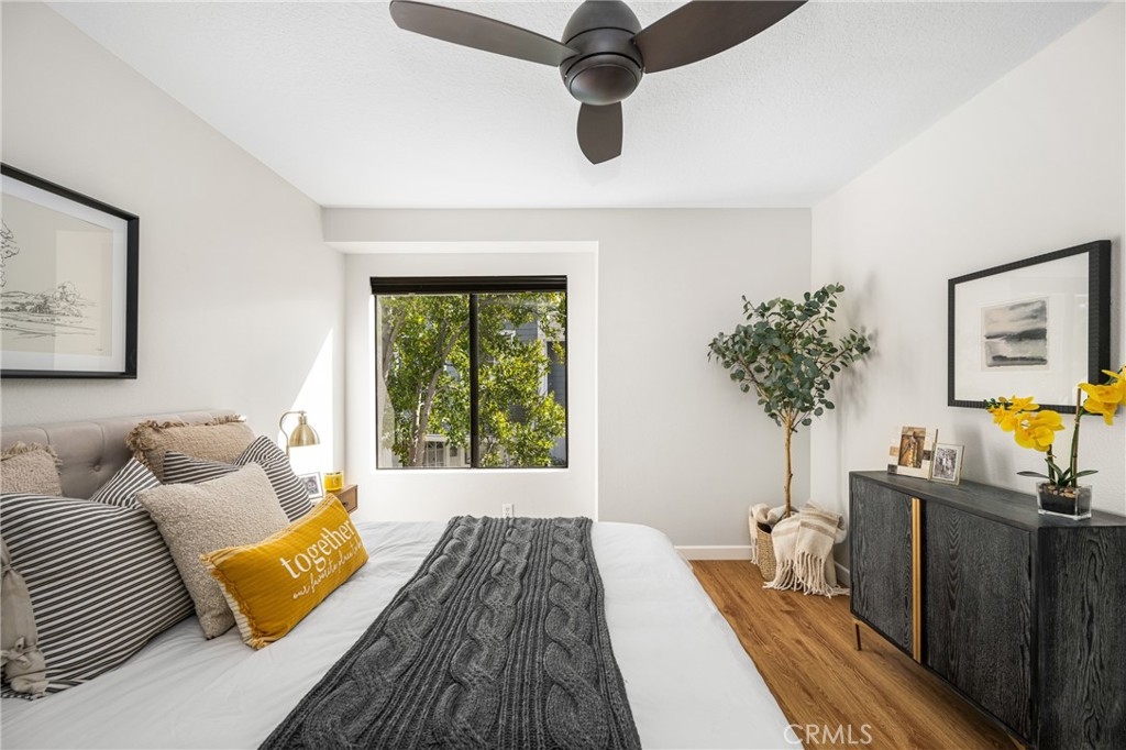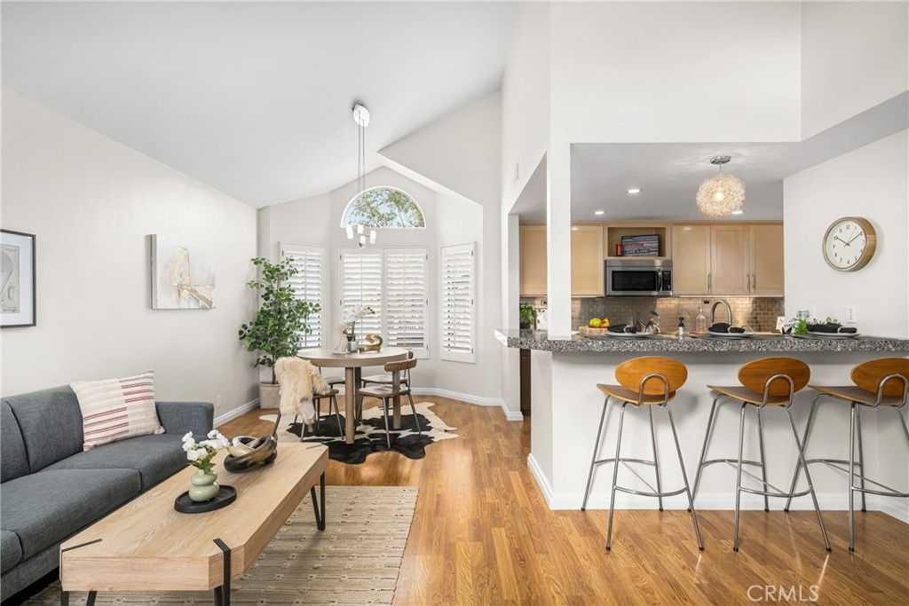 Welcome to 74 Remington, this upper-level home, with no one above or below, is located in the Horizon community in the Village of Northwood. Just up the stairs, enter the home and discover a bright and inviting atmosphere. This well-thought-out space features an open floorplan, perfect for everyday living or entertaining family and friends. The main living area features plantation shutters and vaulted ceilings with walls of windows that flood the home with sunlight! Fresh new paint and warm wood-style floors throughout the home, create a seamless flow between living spaces. The remodeled kitchen features updated cabinetry, stone and stainless-steel counters, as well as stainless appliances, including a new dishwasher. A breakfast bar, separating the kitchen from the living space, is the perfect spot for casual dining. The spacious primary suite features a large walk-in closet, ceiling fan & custom shade. The remodeled primary bathroom offers a new crisp white vanity, fixtures and new toilet. A separate area with the toilet and walk-in shower, with tile surround, provides comfort & privacy. The secondary bedroom can also be used as a home office or den. The remodeled hall bath features a new vanity, new toilet and modern black fixtures. The detached 1 car shared garage, directly below the home, ensures both convenience and security, as well as additional storage space. Extend your indoor living to the outdoors on the spacious balcony, where you can enjoy outdoor dining or just unwind at the end of the day. Just a short distance to the association pool and just across the street, explore nearby Orchard Park. Indulge in nearby shopping and dining at Cypress Village Shopping Center and quick access to freeways. Attend top-rated schools including Northwood High. Don’t miss the opportunity to make this your personal oasis. Your new home awaits! Check out the 3D tour of this beautiful home at: https://my.matterport.com/show/?m=7Gtvq9vTk6Y&brand=0