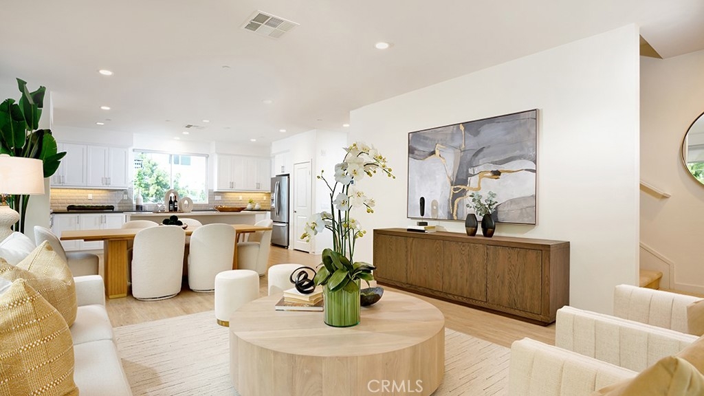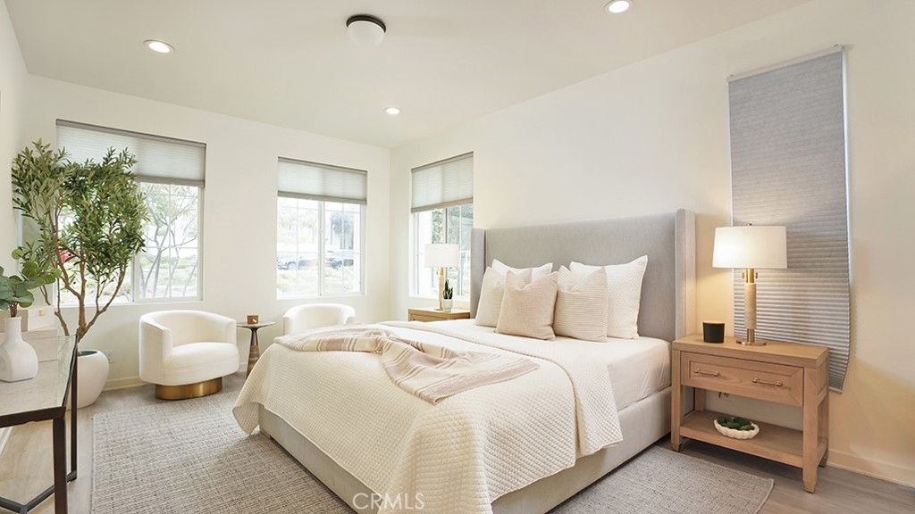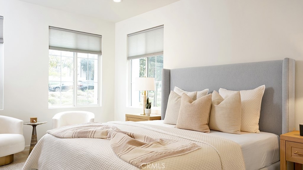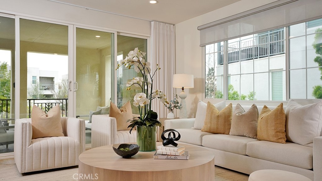 Situated on a premium corner lot within the highly sought-after Great Park community of Irvine, this beautifully appointed residence offers the perfect blend of modern design, functionality, and lifestyle convenience. Thoughtfully designed, the home features four bedrooms and three-and-a-half baths, including a desirable main-level bedroom with its own ensuite bath, ideal for guests, a private office, or added flexibility. The second level showcases a bright, open-concept layout where the kitchen, dining area, and living room seamlessly connect to create an inviting central gathering space. Expansive windows flood the interiors with natural light, while the living room extends effortlessly onto a generous private balcony, perfect for indoor-outdoor entertaining or quiet relaxation. Upstairs on the third level, three spacious bedrooms include a well-appointed primary suite featuring a luxurious ensuite bath with dual sinks and a separate shower. An adjacent laundry room adds everyday convenience. Recessed LED lighting enhances the home throughout. Residents enjoy walking-distance access to an array of resort-style community amenities, including a pool, spa, BBQ areas, clubhouse, and the beautifully designed Parasol Park. The surrounding area is rich with recreation, offering nearby water parks, tennis courts, soccer fields, Great Park Ice & FivePoint Arena, and more. Located within the coveted Irvine School District, this exceptional home presents a rare opportunity to experience comfort, style, and community in one of Orange County’s most desirable settings.