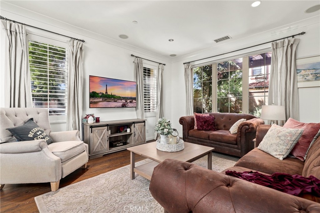Welcome home to your beautifully appointed and welcoming home in the highly desirable neighborhood of Cypress Village neighborhood! Light and bright with walls of windows, open floor plan with modern finishes, wide plank LVP flooring, and ceiling speakers round out the great room. Contemporary gourmet kitchen with gorgeous white granite counter tops, center island with breakfast bar, stainless steel appliances, abundant white cabinetry and walk-in pantry. There is a large dining area adjacent to kitchen and open to the wonderful backyard. Upstairs loft is great for work station or relaxing reading nook. Romantic master suite with Juliette balcony and lovely morning sun. Master bedroom is spacious; the bathroom has a frameless shower; soaking tub, dual vanities and walk-in closet. The other two bedrooms are also spacious and have shutters. You’ll also love relaxing in your spacious, professionally landscaped back yard and patio. Other features include a tankless water heater and recessed lighting throughout; separate laundry room and washer/dryer are included. 2-car attached garage with direct access. Enjoy the amenities of multiple barbecue grills, picnic table, pools, parks and sport courts. Close to Irvine School District schools, restaurants and shopping center.