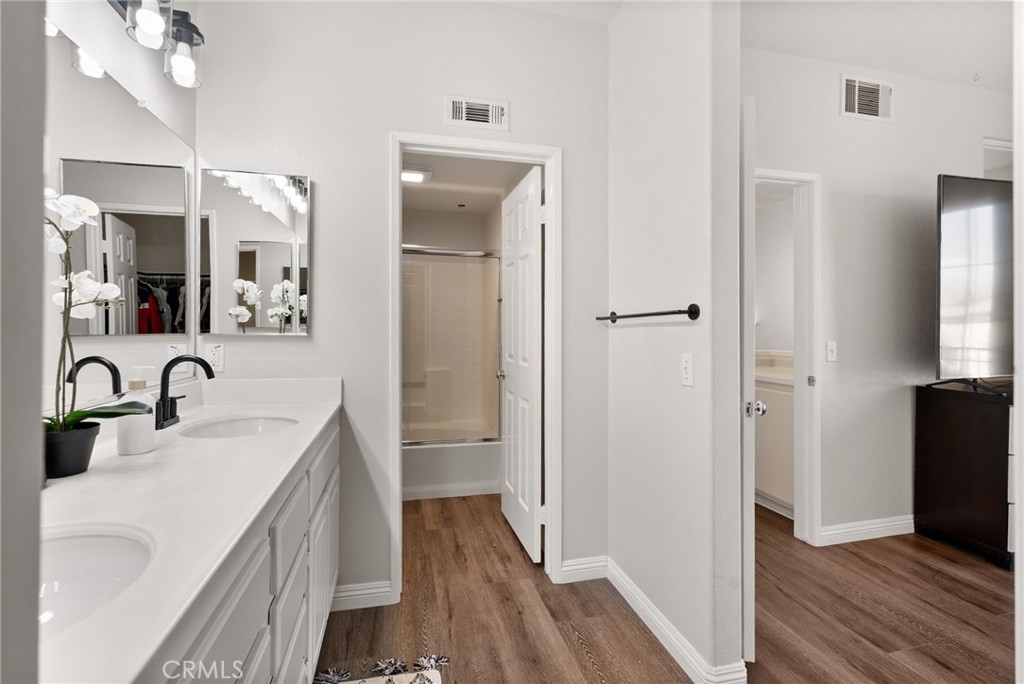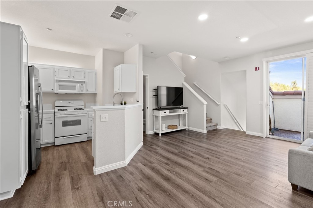 Welcome to this bright and inviting condo located in the highly sought-after gated community of Oak Park, Irvine. NEW stainless steel kitchen appliances to replace white ones with accepted offer (existing refrigerator included). This home's Spanish-inspired architecture, red-tile rooflines, and lushly landscaped pathways, this residence blends timeless charm with modern updates. Step inside to find a tri-level condo with recessed lighting and upgraded wood-style flooring that flows seamlessly throughout the main level. The spacious living room is perfect for both relaxing and entertaining, while the adjacent dining area and kitchen create an effortless flow. The kitchen features crisp white cabinetry, tile countertops, a stainless-steel refrigerator, and a full suite of appliances, making meal prep a breeze. Enjoy the private balcony, a perfect spot for morning coffee or evening unwinding. Upstairs the primary suite offers a peaceful retreat with peekaboo mountain views, abundant natural light, dual vanities, and a large walk-in closet. Recent upgrades include washer/dryer appliances, water heater (2023), recessed lighting, water shut off valve, plantation shutters, and bathroom fixtures. The attached 2-car garage offers ample storage space as well. Enjoy resort-style amenities including pools, spas, basketball court, playgrounds, and walking trails. A block or less from from Coffee Bean, Starbucks, 2 gyms, Gelson's, Ralph's, and too many restaurants to count, Conveniently located near Oak Creek Shopping Center, Irvine Spectrum, The District, John Wayne Airport, and top-rated Irvine schools. Easy access to I-5 and 405 freeways. To top it off, this property has NO MELLO-ROOS and one of the lowest HOA in the city. A fantastic opportunity to own in one of Irvine’s most sought-after neighborhoods. Property qualifies for 3% Down, No PMI, $20,000 for closing or rate buy down!