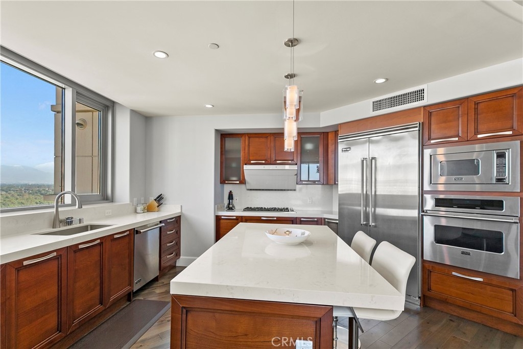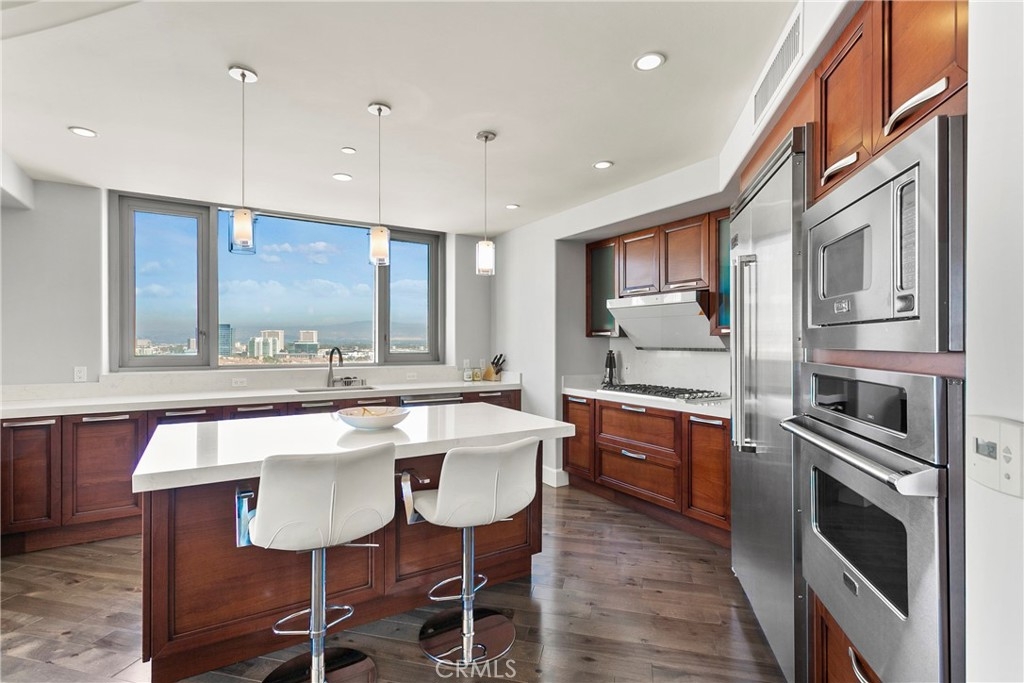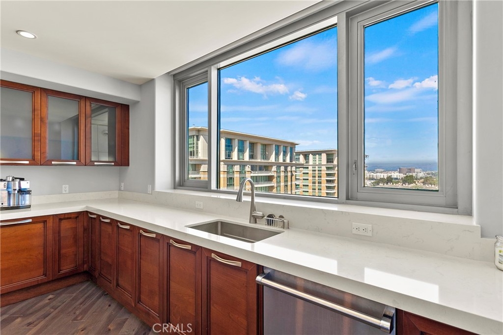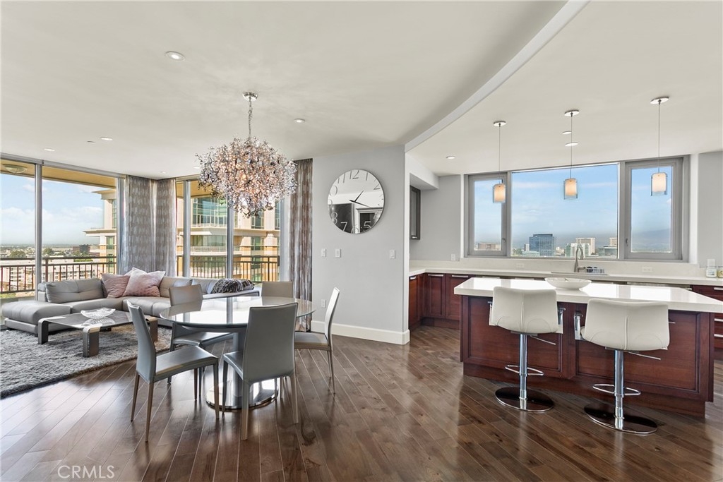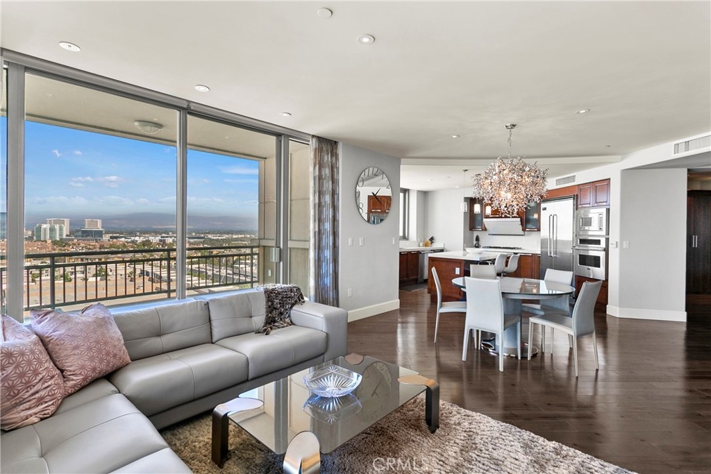 Breathtaking Views from 14th floor in every room! This stunning high-rise masterpiece offers 2 large in-suite bedrooms plus a den with a Corner wrap-around balcony with spectacular Sunset view, Mountain views and City lights !! It equipped with a large, bright, open kitchen with quartz counters, Viking Appliances, and a phenomenal view from the panorama windows! This home has gorges hickory hardwood floors, and an exquisite master bathroom featuring a separate shower and tub . Large laundry room with Quartz counters, Italian cabinets, and a sink. Upgraded Lutron lighting package, and motorized shades. This extraordinary home shows like a model and has too many upgrades to list! Experience extraordinary amenities including cabanas, junior Olympic pool, lap pool, spa, fitness center, yoga room, clubroom, business center, conference room, concierge and more. Walk to restaurants, close to freeways, shopping, airport, beach and UCI. The Plaza Irvine offers the highest quality services available with 24-hour attendants service.