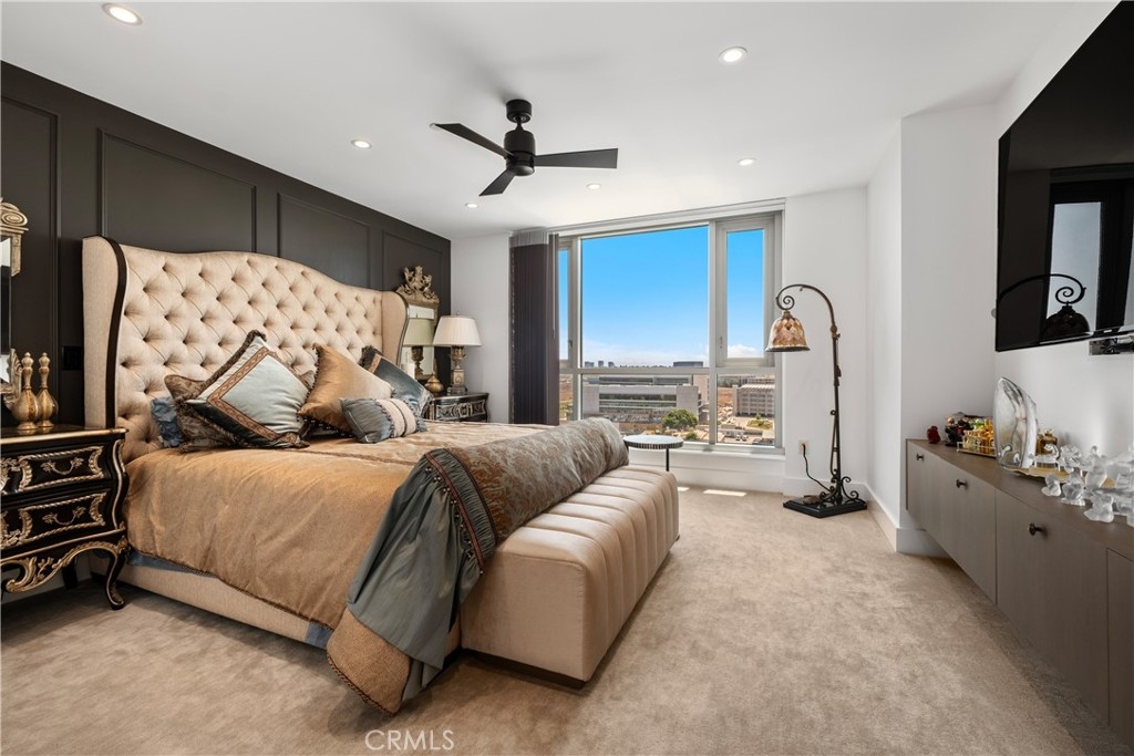 Don't Miss This Opportunity! New Price adjustment for quicker sale! Seller reviewing all offers .Welcome to Single-Level Luxury Living on the 14th Floor of the Prestigious 8000 Building at The Plaza in Irvine – Just Below the Penthouse. Experience elevated elegance in this stunning, premium residence boasting breathtaking sunset and city light views from every room. Perched high on the 14th floor, this sophisticated home has been meticulously upgraded with high-end finishes and a contemporary design palette that complements any décor with rich, modern flair. Bathed in natural light, the open concept living area seamlessly blends style and comfort. The gourmet kitchen is a chef’s dream, featuring sleek Quartz countertops, built-in appliances, and custom cabinetry—ideal for both entertaining and daily living. Additional luxury upgrades include beautiful hardwood flooring and motorized window shades for added convenience. Step onto your private balcony and take in panoramic views of the Irvine skyline and beyond. Residents of The Plaza enjoy exclusive access to world-class, resort-style amenities including 24-hour concierge service, two sparkling pools with cabanas, a state-of-the-art fitness center with steam rooms, club and billiard rooms, a business center, and more. HOA dues cover gas, water, and trash. Whether you’re looking for a refined primary residence or a fully furnished luxury rental, this home delivers the ultimate in convenience, style, and sophistication—right in the heart of one of Orange County’s most prestigious communities. Truly a must-see to appreciate.