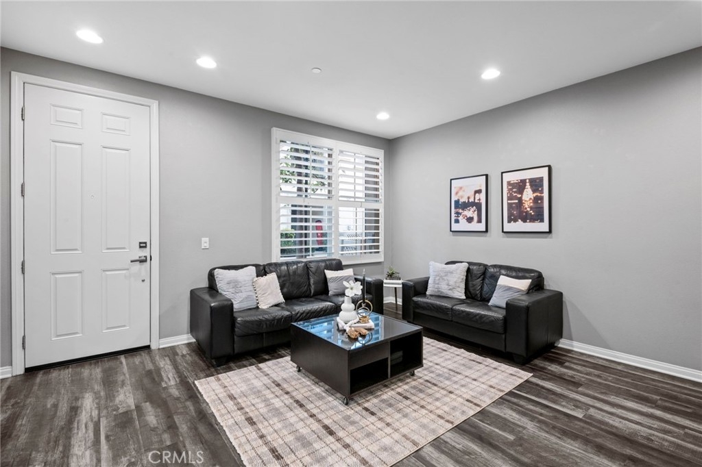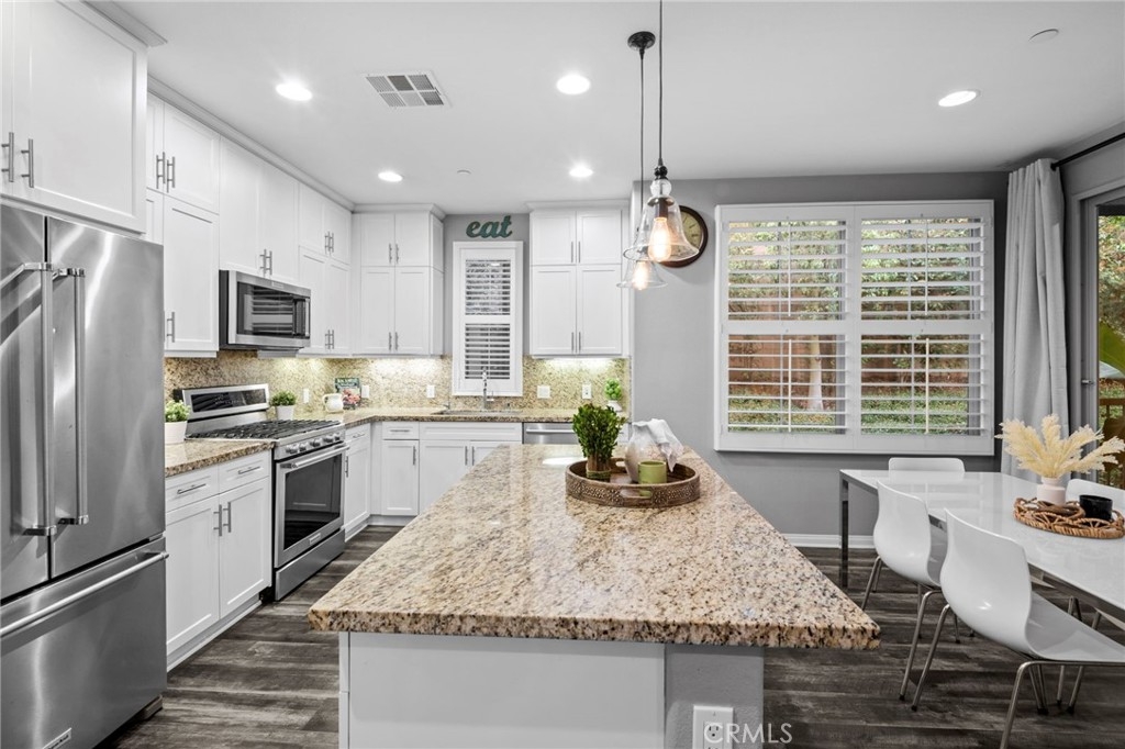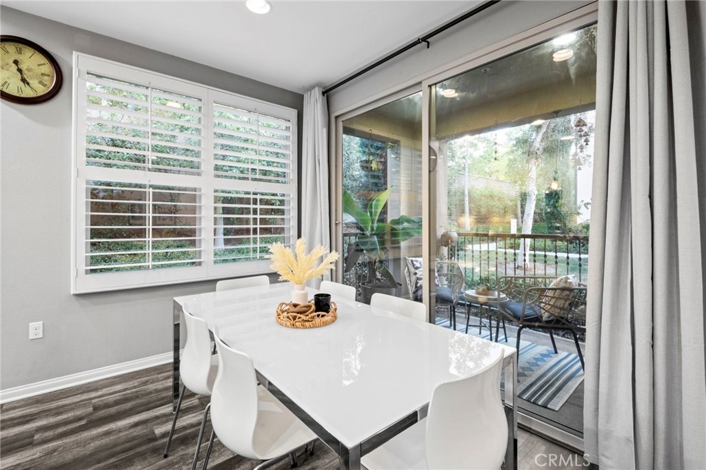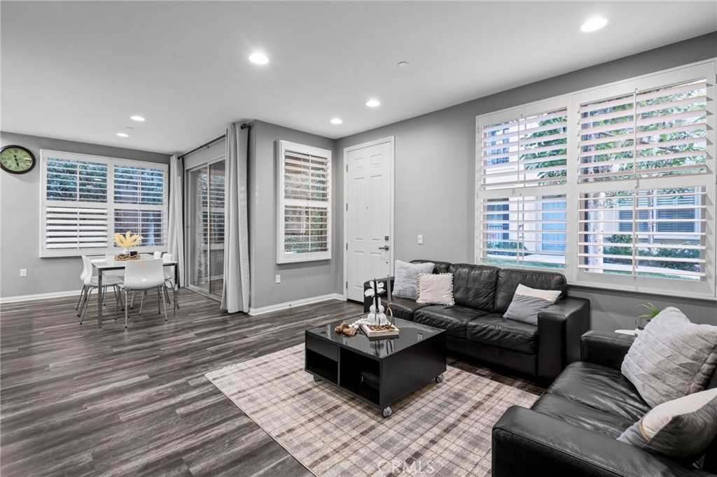 This stunning single-story corner unit offers tranquil greenbelt views and an open-concept layout with luxury vinyl plank flooring throughout the main living spaces. Great for a starter home or an investment! The home features two well-appointed bedrooms on the main level, including a primary suite with a walk-in shower and spacious walk-in closet. Elegant plantation shutters and recessed lighting enhance every room, while a dedicated laundry room adds convenience. The gourmet kitchen showcases granite countertops, stainless steel appliances, water filtration system, and a gas range, complemented by an kitchen island that doubles as a casual dining spot. The formal dining area flows seamlessly to a private balcony overlooking the peaceful greenbelt. Additional highlights include a tandem 2-car garage with generous storage space. Situated in the highly sought-after Portola Springs community, this home is zoned for award-winning Irvine Unified School District schools and offers residents access to exceptional resort-style amenities. MOTIVATED SELLER, BRING IN ALL OFFERS!