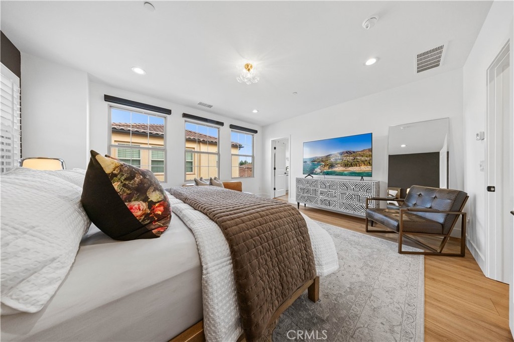 This beautifully upgraded, move-in ready home offers an ideal blend of luxury and privacy, with no common walls—providing the independence of a detached residence. Featuring 3 spacious bedrooms, 3.5 baths, and an abundance of natural light, this home is designed for modern living. The open-concept is highlighted by designer finishes and high-end luxury vinyl plank flooring throughout. The remodeled kitchen is a chef's dream, with sleek quartz countertops, stainless steel appliances, and custom cabinetry. Each bedroom boasts its own en-suite bathroom, ensuring ultimate comfort and convenience for all. The primary suite is a true sanctuary, featuring a spa-inspired bath and generous closet space. Additional amenities include a guest powder room, central A/C, recessed lighting, and a private outdoor patio perfect for relaxation. This home is completely turnkey, with modern upgrades and thoughtful details throughout. Located within an exceptional school district with top-rated schools nearby, this home not only provides a stylish and comfortable living space, but also offers access to outstanding educational opportunities for families. With convenient proximity to shopping, dining, and major freeways, this home truly offers the best of both comfort and convenience.