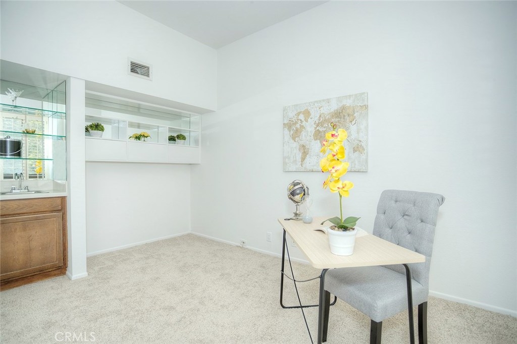 Nestled among trees with an amazing view of the San Joaquin Golf Course, this condo has a peaceful, warm feeling that you can call home. Located in the Rancho San Joaquin Community in Irvine, this open floor plan boasts of two bedrooms, two bathrooms, plus a den that can be used as an office, family room or even a third bedroom, and two-car garage. The well-appointed kitchen has plenty of cabinets, ample counter space, and a separate dining area. Step down into the living room that has recess lighting, a fireplace and Plantation shutters which allow the natural sunlight in. Your living extends to three private balconies that are perfect for barbecues, entertaining, or just relaxing and enjoying the beautiful scenery. The spacious master suite has its own balcony, two large closets and a bathroom with a large vanity and double sinks. For your convenience, laundry is between the two bedrooms. Some amenities offered at Rancho San Joaquin are a community pool, spa, meeting room room and beautifully landscaped common areas. So many options and possibilities for a home owner and/or investor!! Great location!! Just minutes from UCI, William Mason Park, Fashion Island, dining, the beach and freeway access.