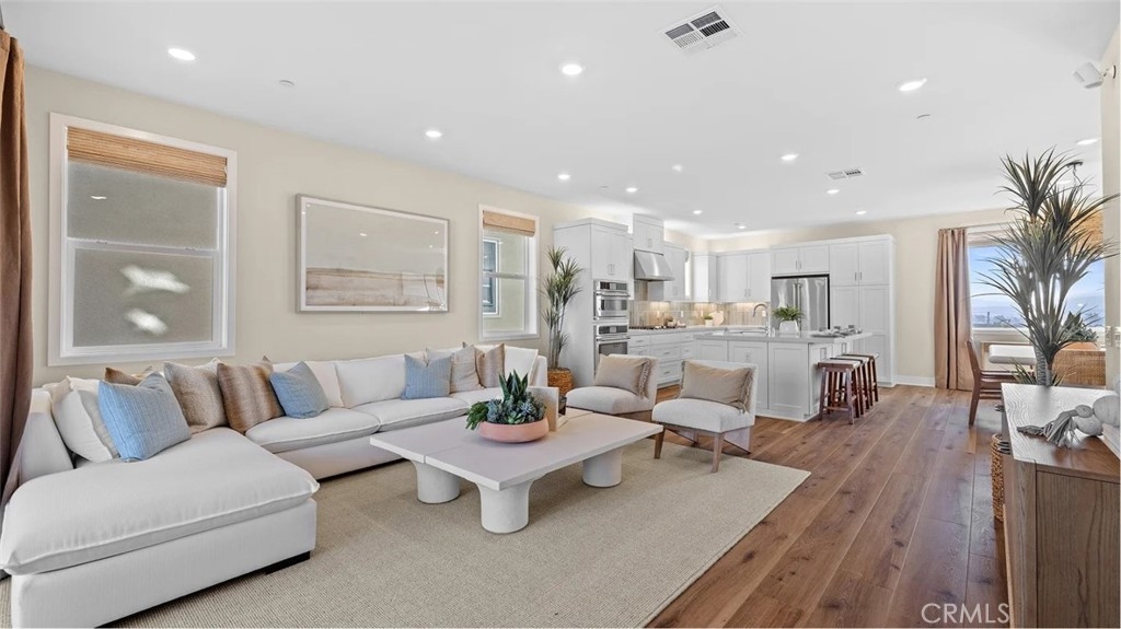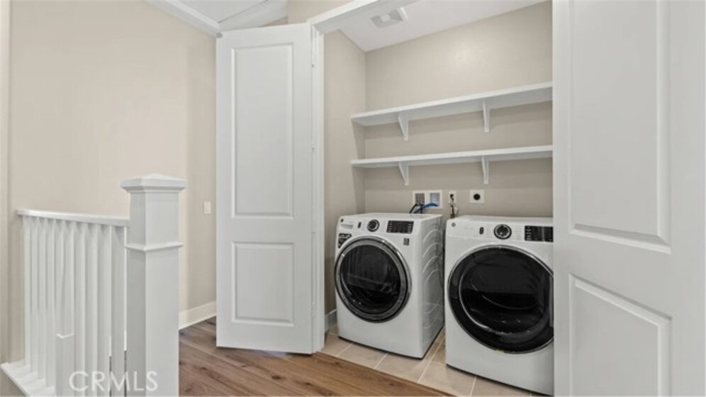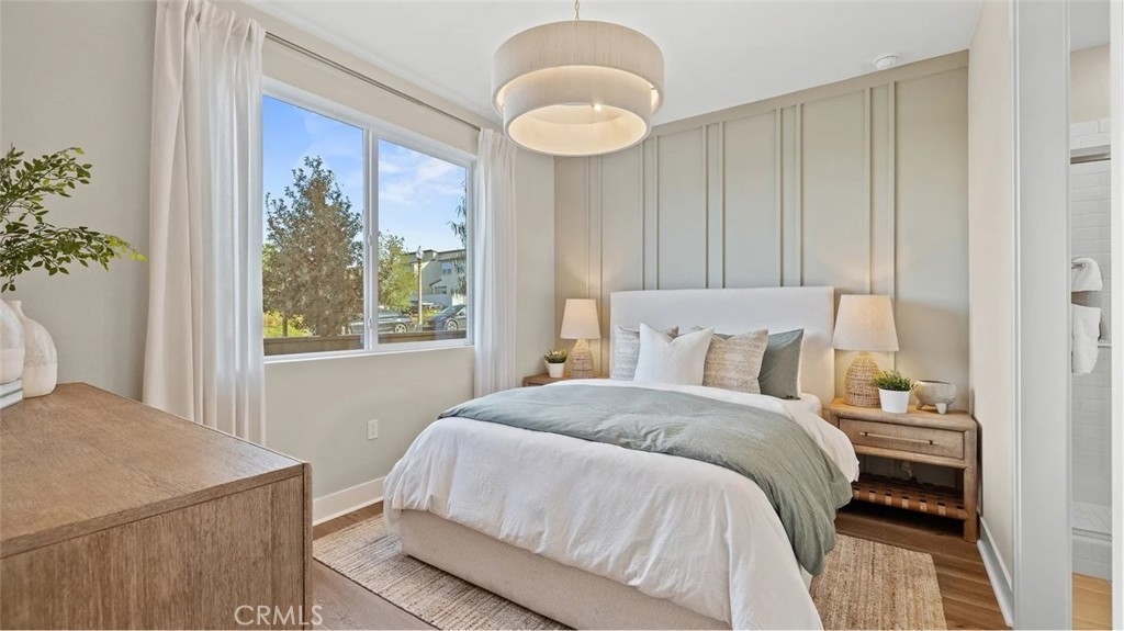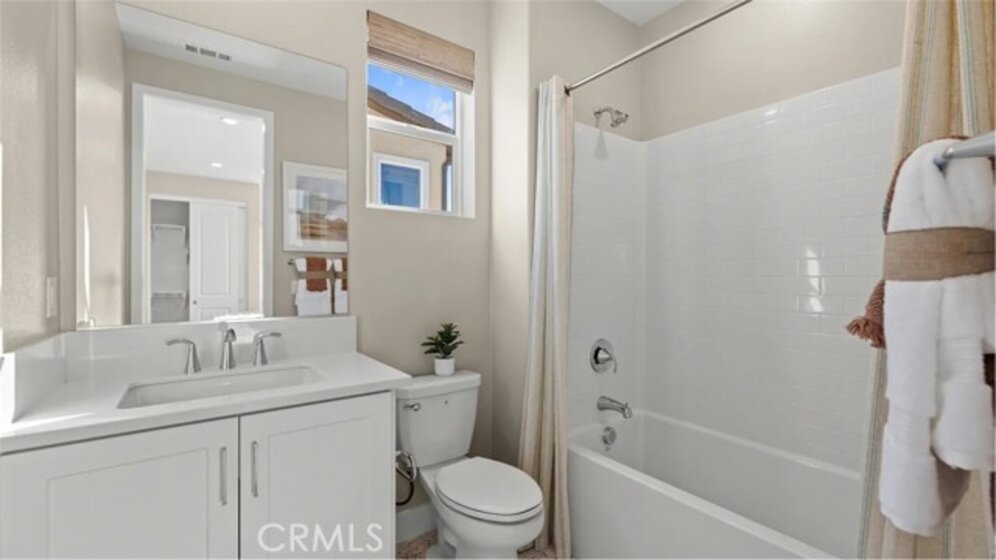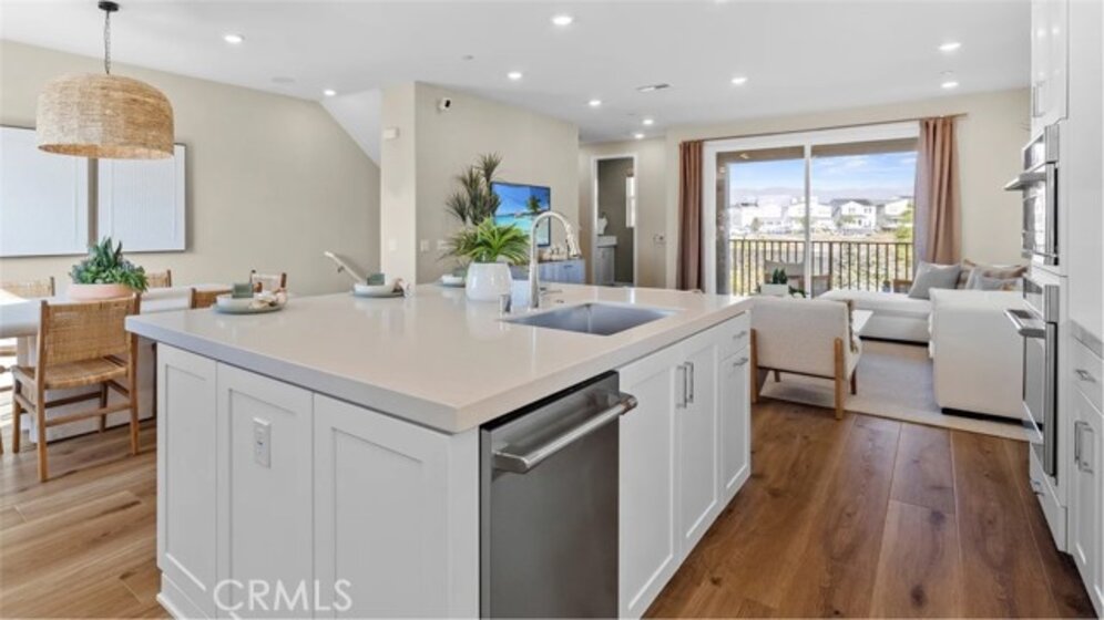 At Great Park's newest home collection RHEA, the plan 1 home features a flexible and well-designed home built for modern living. The 1st floor features a 2-bay garage and a bedroom perfect for guests, or a private home office. The second floor showcases an entertainer’s kitchen with an large kitchen island, plentiful cabinets for storage, and a spacious balcony. The third floor offers a spacious primary with an extra long private balcony. There is an equally spacious secondary bedroom with its on en-suite bathroom. Between the secondary bedroom and the primary suite is a conveniently located laundry closet. This home is just a short walk to a stunning 13-acre park with beautiful amenities including 2 pools, pickle ball, handball, basketball, tot-lot and more. The home is in a desirable street-facing location, offering easy guest parking in front.