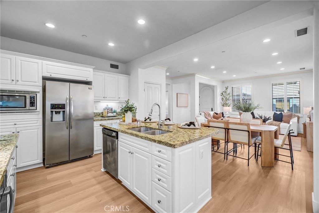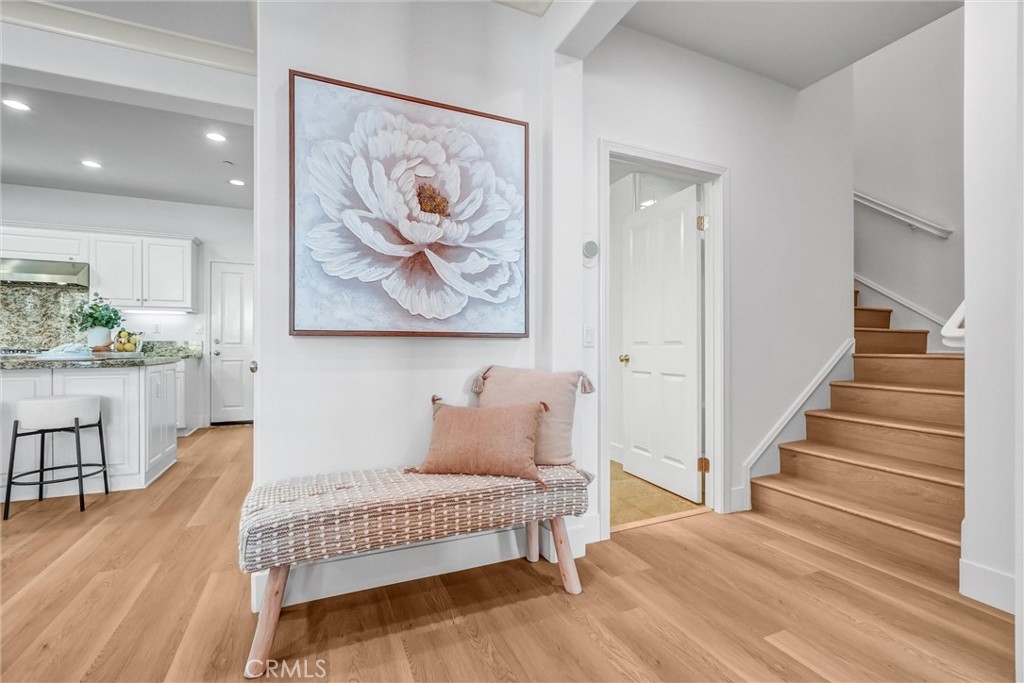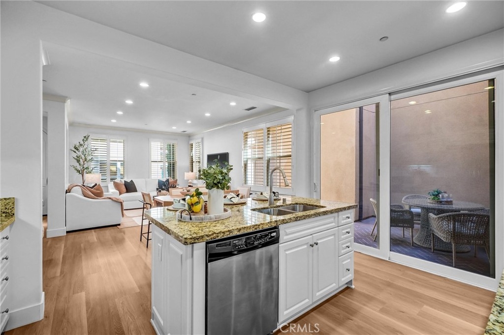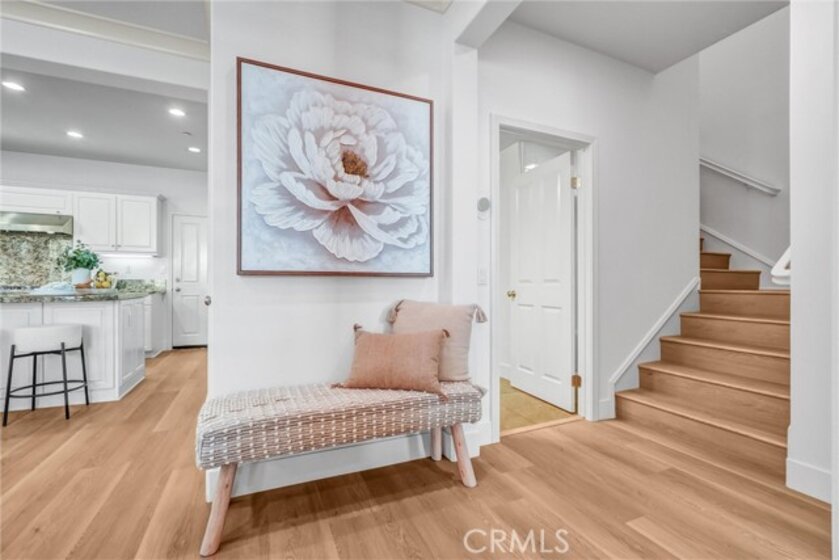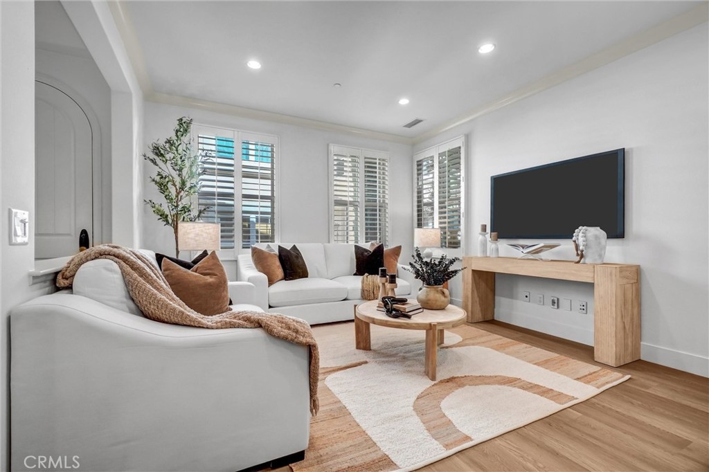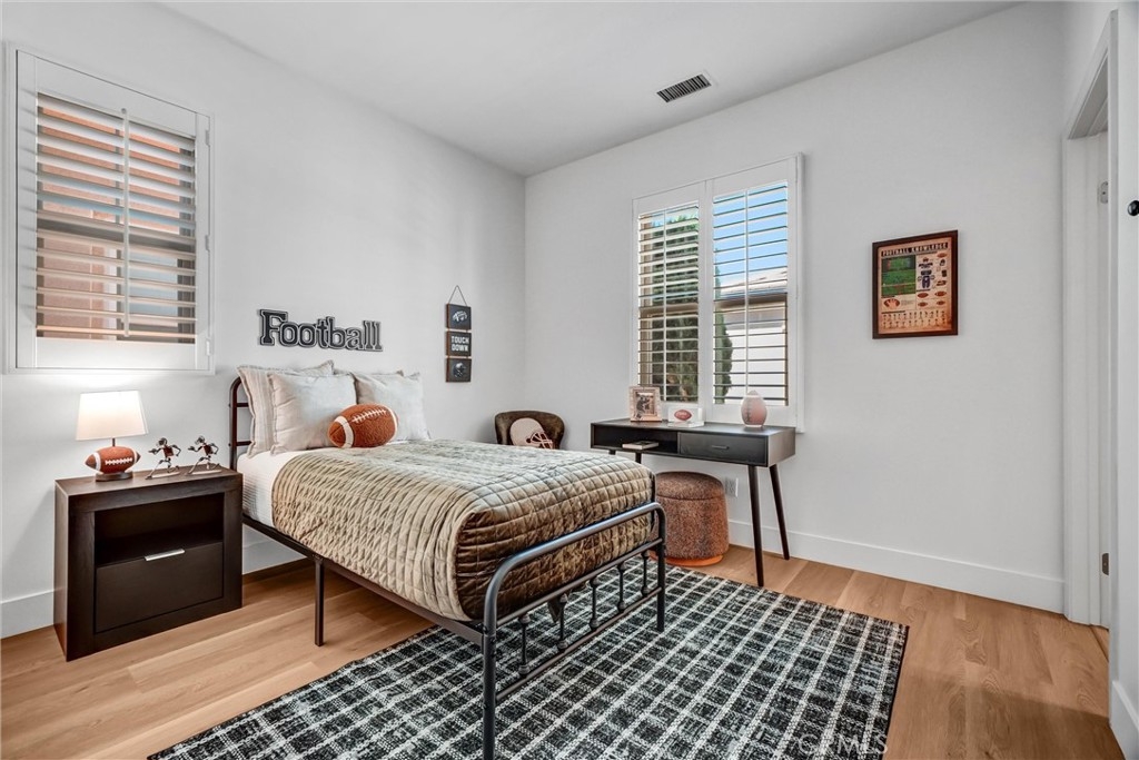 ABSOLUTELY GORGEOUS, BEAUTIFULLY UPGRADED home in the heart of Woodbury, one of Irvine’s most sought-after communities. This exceptional residence features a HIGHLY DESIRABLE FLOORPLAN WITH DOWNSTAIRS BEDROOM AND BATH, PERFECT FOR GUESTS, MULTIGENERATIONAL LIVING, OR A PRIVATE HOME OFFICE. Step inside to a thoughtfully designed great room FILLED WITH ABUNDANT NATURAL LIGHT, enhanced by fresh interior paint throughout and newly installed rich laminate hardwood flooring that flows seamlessly throughout the open-concept living space. The inviting layout creates an ideal setting for both everyday living and entertaining. The gourmet kitchen is a true centerpiece, complete with a center island, granite counters, ample cabinetry, and direct access through sliding doors to the private patio yard—perfect for enjoying morning coffee or indoor-outdoor gatherings. Additional highlights include PRIMARY BEDROOM WITH SPACIOUS WALK-IN CLOSET & bathroom, elegant wood window shutters, a convenient upstairs laundry room, 2 cars attached side by side garages and a variety of quality upgrades throughout. Enjoy life in Woodbury’s 9.5 acres Recreation center/multipurpose room at the Commons. Enjoy Woodbury 7 resort style pools and spas, Fireplaces and barbecue areas, neighborhood gardens, sand volleyball, basketball courts, tennis court, sport courts and much more. Location is key, steps to Woodbury Town Center, Woodbury elementary school, and Jeffrey open space trails, while major attractions, John Wayne Airport, Irvine Spectrum, beautiful beaches are only minutes’ drive and excellent Irvine school district.