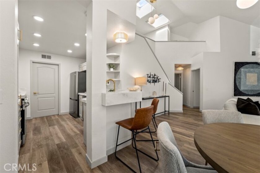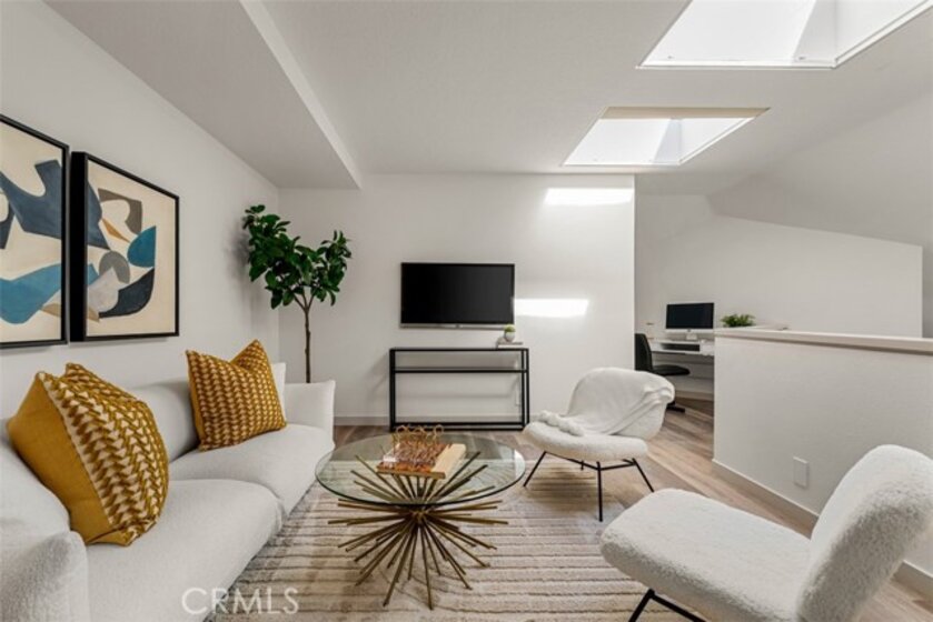 Welcome to this beautifully remodeled 2-bed, 2-bath home with an expansive bonus loft, offering over 1,600 sq. ft. of light-filled living in the heart of Irvine. Thoughtfully upgraded throughout, the home features luxury vinyl plank flooring, refaced cabinetry, new designer fixtures, and custom closets that elevate everyday living. The kitchen boasts stainless-steel appliances and opens seamlessly into the dining and living areas, creating an inviting space for both entertaining and relaxation. Vaulted ceilings draw the eye upward toward the impressive loft—ideal for a home office, media room, or guest retreat. The home includes a separate laundry room and storage area, keeping chores streamlined and out of sight. There is also an attached one-car garage and a separate one-car garage. Enjoy tranquil views of the Mason Regional Park from the large balcony, just moments from your doorstep. With its unbeatable location, you can easily walk to UCI, biking paths, and the shops and restaurants at University Town Center. This move-in-ready home blends modern comfort with the best of Irvine. Offering a lifestyle that’s both effortless and convenient.