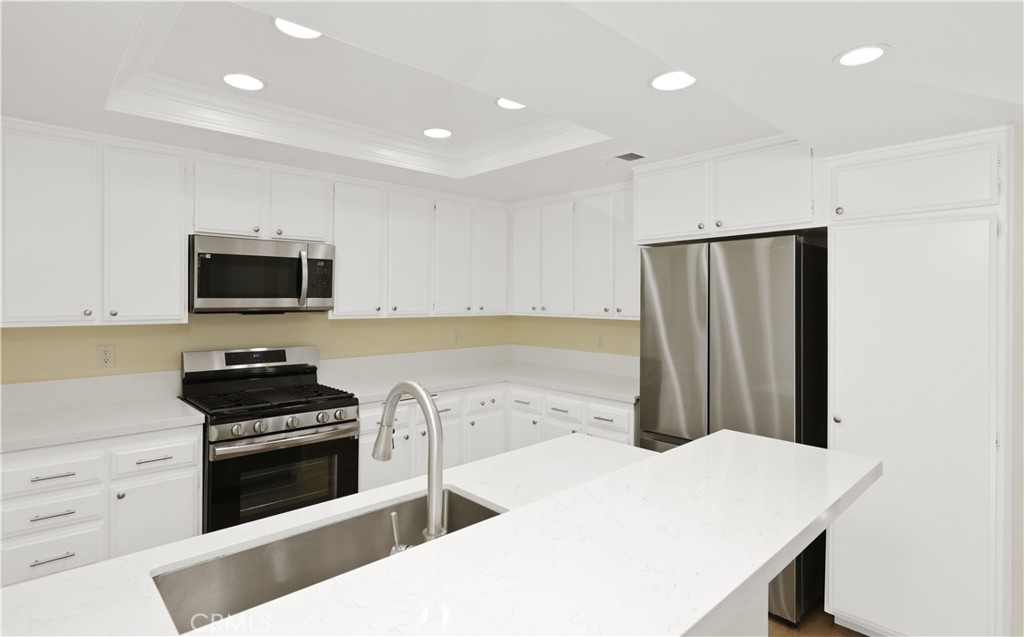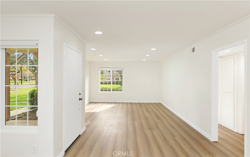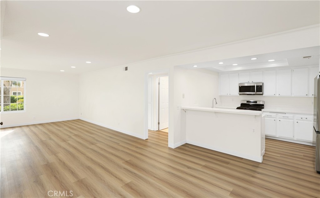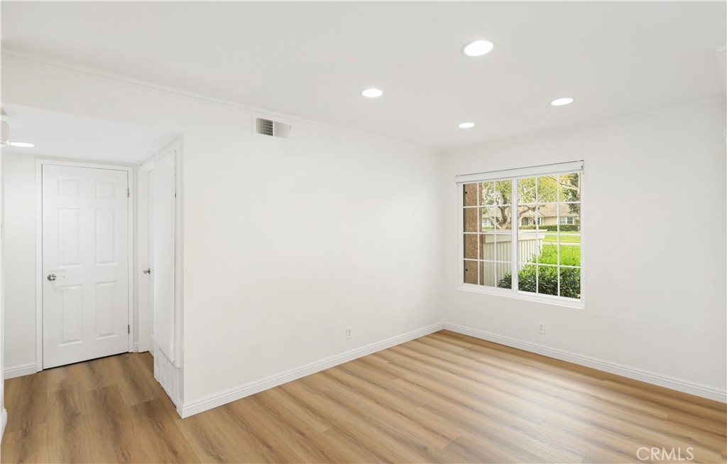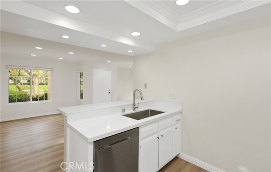 * Greenbelt View * New HVAC* 2 BED+2 FULL BATH* New Flooring * Nestled in a quiet corner location with peaceful greenbelt views, this beautifully upgraded lower-level, single-story condo offers privacy and abundant natural light in the highly desirable Woodbridge community of Irvine. This 2 bedroom, 2 bathroom home features a bright open floor plan with large dual-pane windows, laminate flooring, recessed lighting, crown molding, and scraped ceilings. The upgraded kitchen includes quartz countertops, stainless steel appliances, and a breakfast bar that opens to the dining area and spacious living room. The primary suite is privately situated from the second bedroom and features two closets and a renovated bathroom with dual vanities and quartz counters. The second bathroom has an updated tiled shower. Additional highlights include an individual laundry room with full-size washer and dryer, extra storage near the entry, and an assigned carport with ample guest parking. Residents enjoy Woodbridge’s resort-style amenities including lakes, beach lagoons, pools, spas, tennis and pickleball courts, parks, and scenic walking paths. Conveniently located near top-rated Irvine schools, shopping, dining, and easy access to the 405 and 5 freeways, just minutes from Irvine Spectrum, John Wayne Airport, South Coast Plaza, Fashion Island, and Newport Beach.