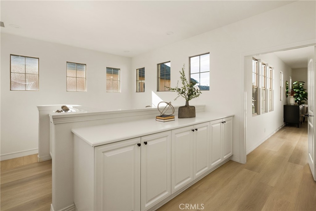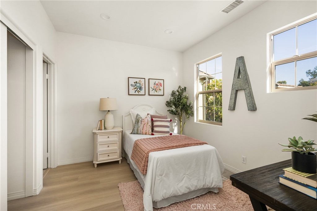WOW! Fall in love with this model-like home, equipped with all the bells & whistles, and enjoying a quiet, premium cul-de-sac location & lush greenbelt setting. Nestled in the award-winning Woodbury community, this stunning Stonetree Manor Residence 1 has been thoughtfully redesigned and customized with luxurious finishes and laid out to maximize flexibility and everyday livability. Presenting tranquil greenbelt views & rare privacy with a lush outdoor space & sunny orientation, the design offers a bright, open feel throughout and a floor plan that adapts easily to a variety of lifestyles — whether you need a home office, guest space, or sufficient space for multigenerational living. Designed for the modern entertainer, guests are welcomed to an open-concept living space showcasing handsome wide-plank flooring and anchored by a cozy fireplace and dramatic arched windows framing inspiring outdoor views. The family cook will love preparing meals in this timeless kitchen featuring ample cabinetry, beautiful quartz surfaces, large chef’s island with bar seating, and a 5-burner gas cooktop, double KitchenAid ovens, and separate built-in microwave. Enjoy casual dining indoors or opt for the serene courtyard oasis that inspires outdoor living…the options for hosting are endless. Just off the main living area is a versatile study, currently styled as a home office, but with access to a closet, it’s designed to function as the fourth bedroom if desired. Offering privacy & comfort, a separate downstairs bedroom & bath is ideal for guests, while a convenient home management area & 2-car garage with epoxy floors complete this level. It's rare to find a home this light & bright, but as you head upstairs, it’s easy to see why. Walls of windows create a bright cheerful landing with tons of built-in cabinetry that provide additional practical storage, while a dedicated laundry room is conveniently located nearby. Relax & recharge among bright, tree-lined vistas in your luxurious primary suite with abundant windows, customized walk-in closet, and luxurious spa-like bath. The generous secondary bedroom upstairs is also light & bright offering a private en suite bath ideal for family or guests. Within the highly acclaimed Irvine School District & just steps from the resort-style amenities, enjoy walking to parks, pools, tennis courts, shopping, dining, and more, this vibrant community offers the best of everything. Don't miss your chance to see this stunning property today!